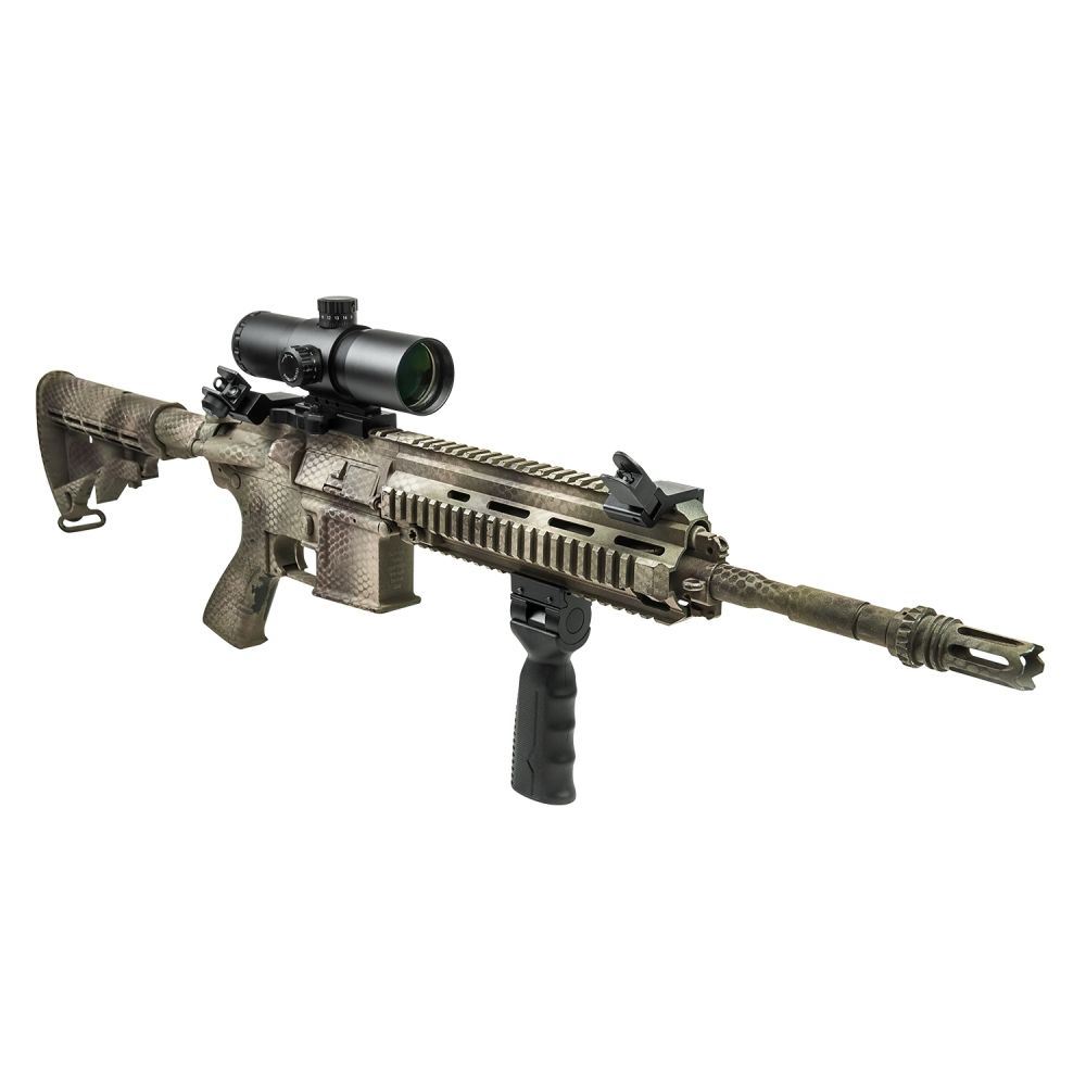 Simply screw it on your picatinny rail and enjoy a fully adjustable and high performing front flip up sight that allow for more clearance with a much lower mount. You can also align your red dot or see-through optic with it and achieve better target precision. Featuring an A2 dual aperture design will also give you an easy control over windage and elevation.