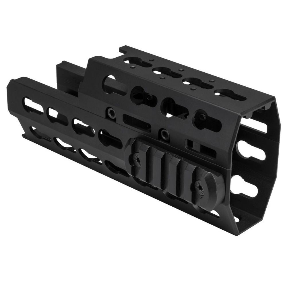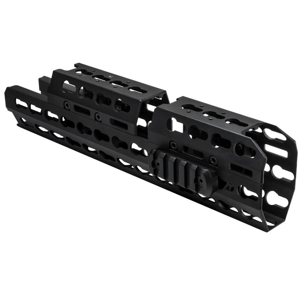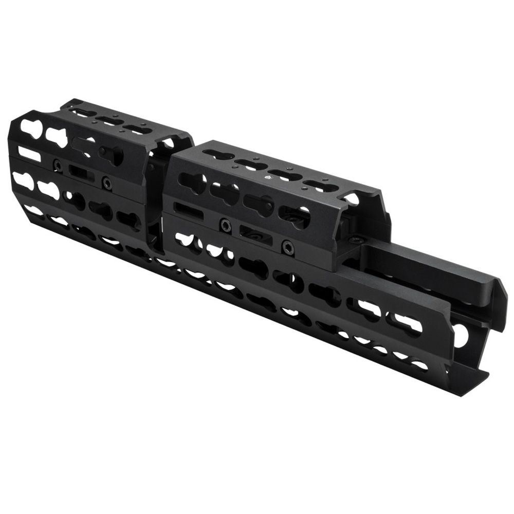 • This is the Extended Length handguard, replaces the standard factory lower and upper wooden/plastic handguards. This Extended handguard extends forward of the Gas Block, giving you more handguard space to hold your AK and for giving you more space to mount your accessories.