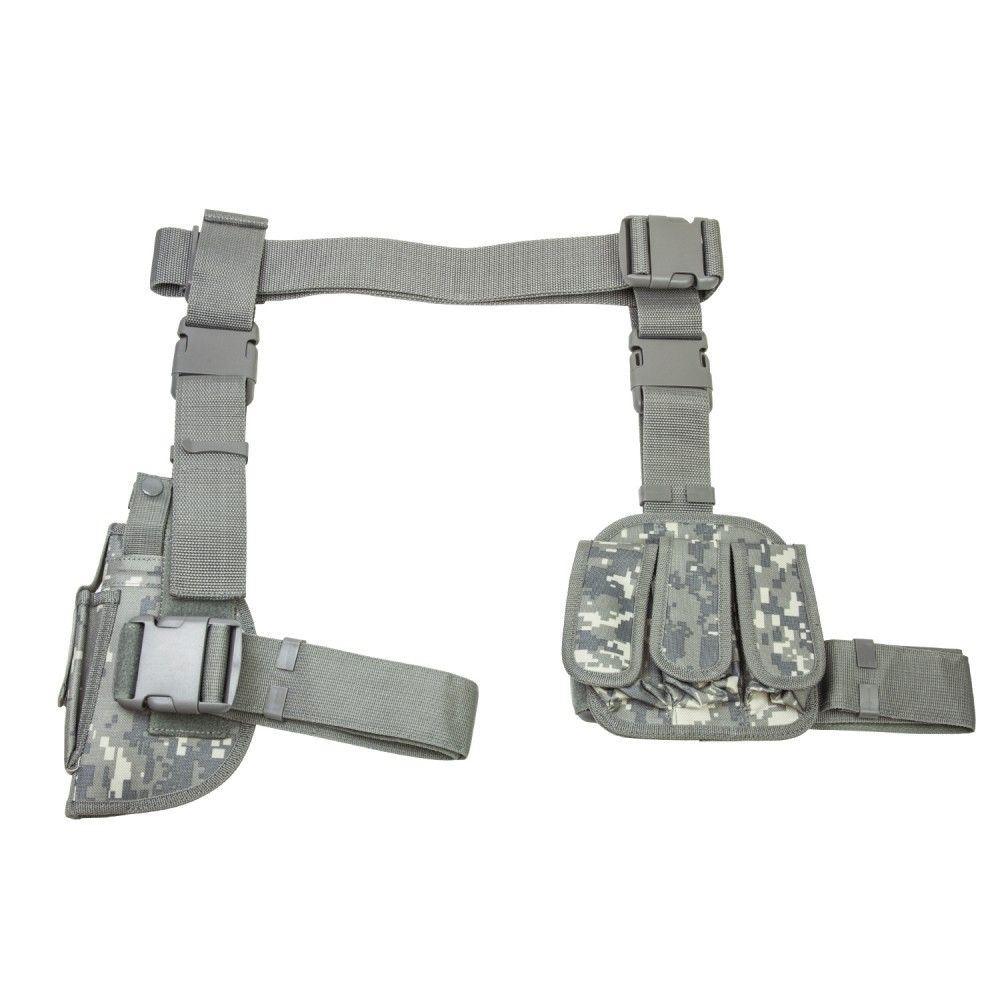 • Holster includes Thumb Snap, a single Magazine Pouch on the front of Holster, adjustable for Drop Leg Height with Quick Release Buckle, and adjustable Thigh Strap with Quick Release Buckle.