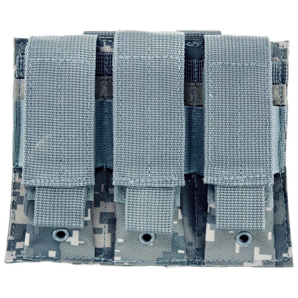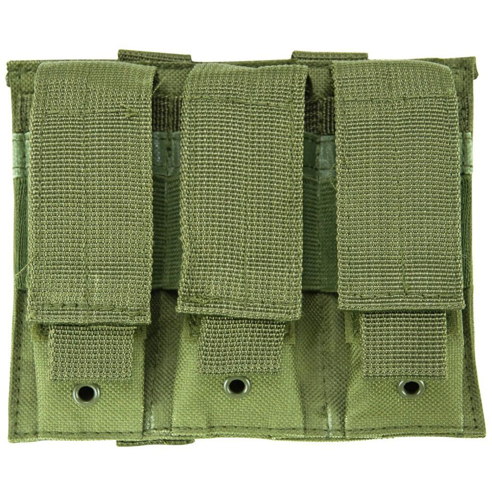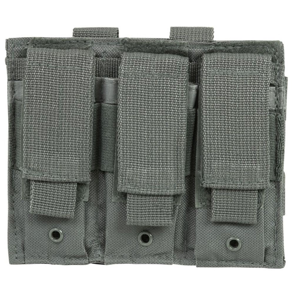 The NcStar Vism Triple Pistol Magazine Pouch Black is constructed with heavy duty PVC material. The elastic belting secures magazines, while the adjustable/removable exterior flaps protect magazines from excess debris.