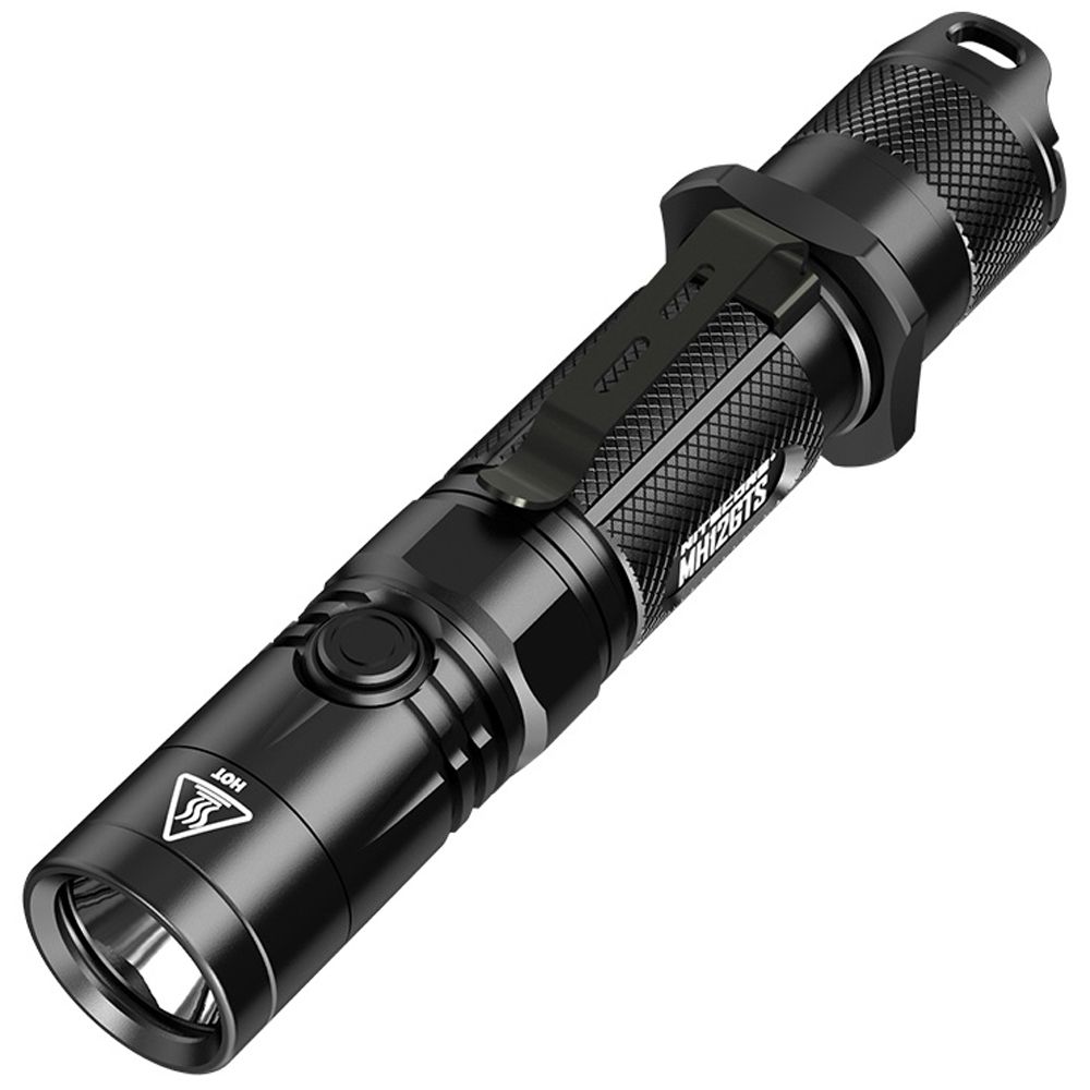 The MH12GTS is powered by 1x 18650 battery (>8A output) (included) and can be easily recharged directly via a built-in charging port on the tail cap. Compatible with any available USB power source such as power banks and solar panels, the MH12GTS can be charged at home or on the go.
