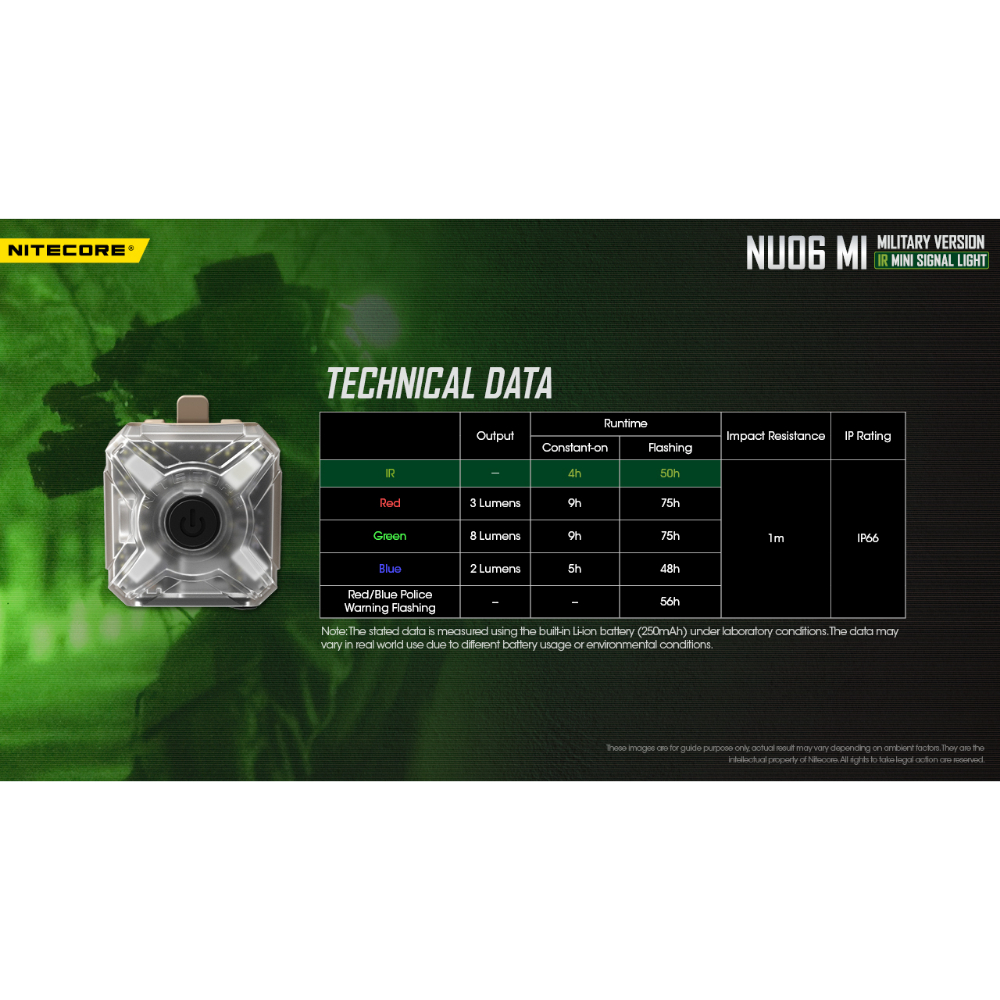 The NU06 LE is a mini LED safety and signal light specifically designed for outdoor activities and law enforcement personnel. It comes with four LEDs in a compact X formation: white, blue, green, and red. The NU06 LE on its own is ARC rail compatible yet still comes with 3 lightweight brackets. Attach it to literally every surface, from bags, helmets, hook-and-loop patches, MOLLE systems on vests and armor, and anywhere else you can think of. The NU06 LE has 4 LEDs in a compact X pattern: white, blue, green and red. They can all be constant on, flashing on, or red and blue LED flashing. The NU06 LE on its own is ARC rail compatible yet still comes with 3 lightweight brackets: a flat magnetic bracket for metal surfaces, a curved bracket for hook-and-loop surfaces, and a four way MOLLE system bracket.