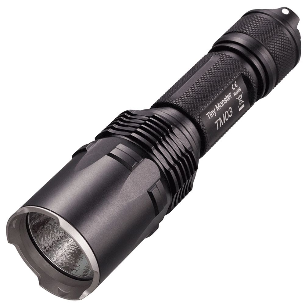 Nitecore 's insane scientists did the unimaginable and put the awesome strength of their Tiny Monster series into the body of a tactical-sized flashlight, the Tiny Monster Nitecore TM03! Still, with an integrated CREE XHP70 LED and the capacity to blast out 2800 lumens of blazing light.