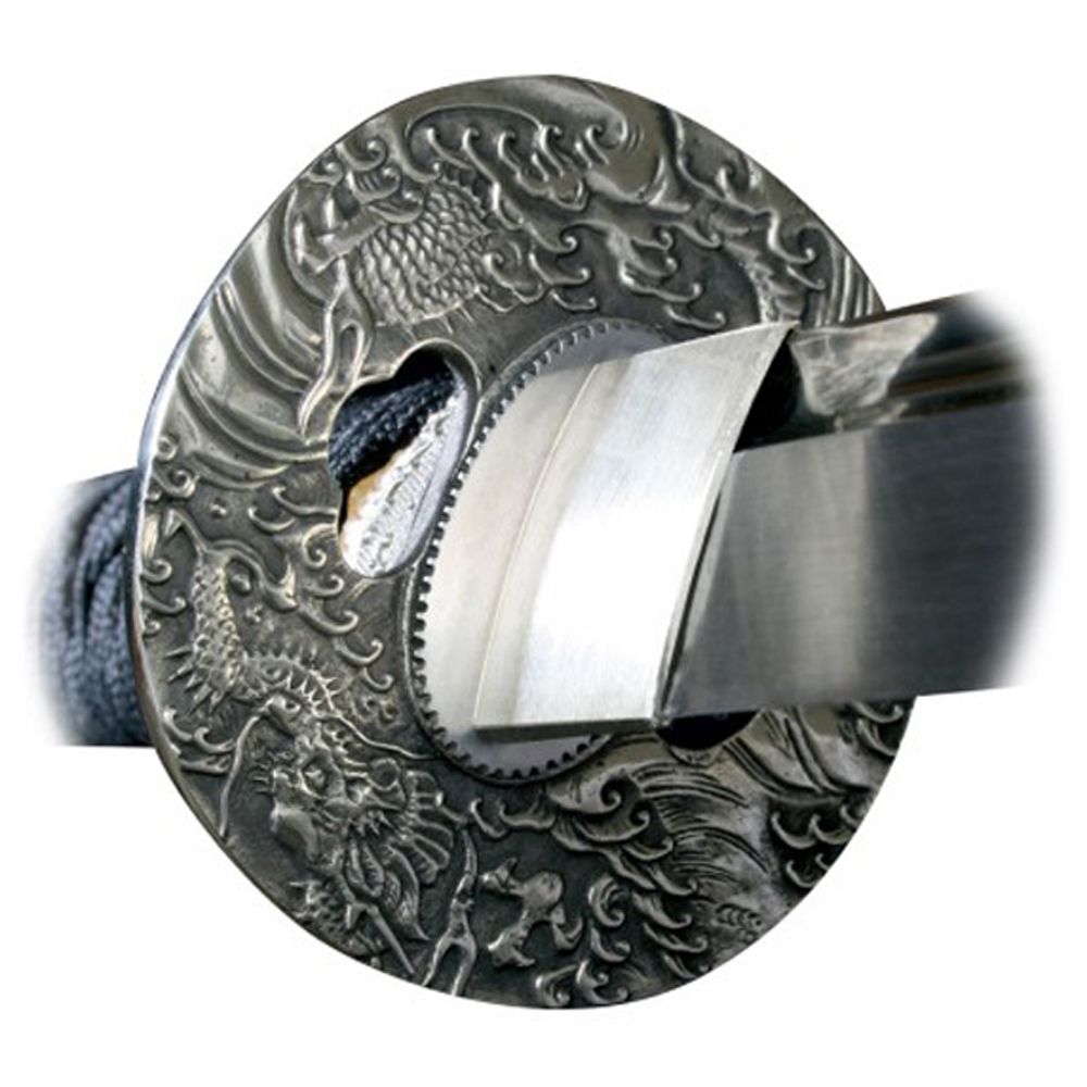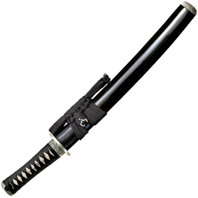 Cold Steel’s Emperor O Tanto is styled to reflect some of the most distinctive hallmarks of Japanese sword design. We use only traditional materials for our Tsuba (guard), Fuchi (collar), and Kashira (pommel) - Each piece is expertly made and finely crafted in nickel-silver. The Habaki (blade collar) is also hand-made from nickel-silver and the hilt is covered in samé (ray skin) and tightly wrapped in the traditional style with black silk cord. A beautiful Menuki (a small, ornamental sculpture inserted between the ray skin and the cord wrappings) further enhances the handles appearance. All of our Emperor swords feature fully sharpened 1060 carbon steel blades that are heat treated to a tough spring temper. The blade is then carefully hand-finished with a beautiful mirror polish applied to the fuller.