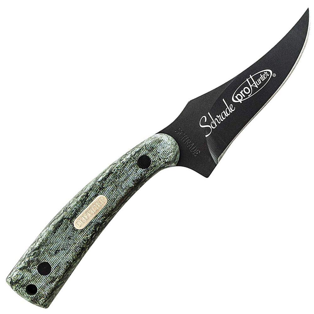 Old Timer Sharpfinger Full Tang Fixed Blade Knife, 7Cr17 High Carbon Stainless Steel Clip Point Skinner Blade, Old Timer Sawcut Handle Slabs with Lanyard Hole, and Brown Leather Belt Sheath