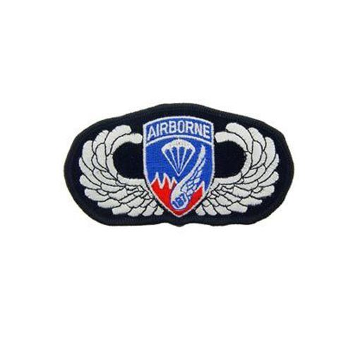 **Features:**- **Material:** High-quality embroidered fabric- **Design:** Winged insignia of the 187th Airborne Regiment- **Dimensions:** Standard patch size- **Attachment:** Sew-on or hook-and-loop backing for versatile application- **Color:** Black, white, and silver accents- **Pattern:** Wing design with detailed embroidery
