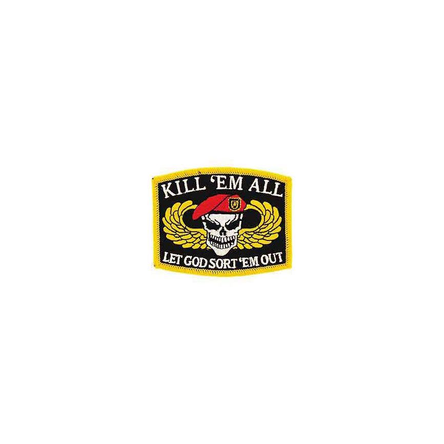 Express your bold attitude with the "Kill Em All Let God Sort Them Out" Patch. This eye-catching patch features a powerful statement in a striking design, perfect for those who embrace a fearless mindset. Crafted from high-quality, durable fabric with vibrant embroidery, it’s an excellent choice for adding a distinctive touch to jackets, bags, or vests.