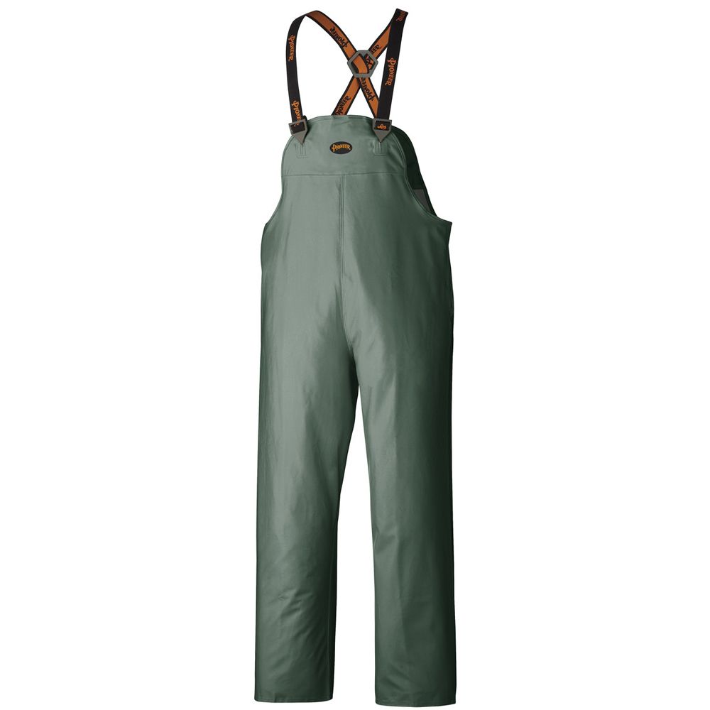 Heavyweight premium .45 mm PVC/polyester100% waterproof and windproofTriple welded seamsReversibleInside bib pocket with pen slotAdjustable waistPremium elastic suspenders