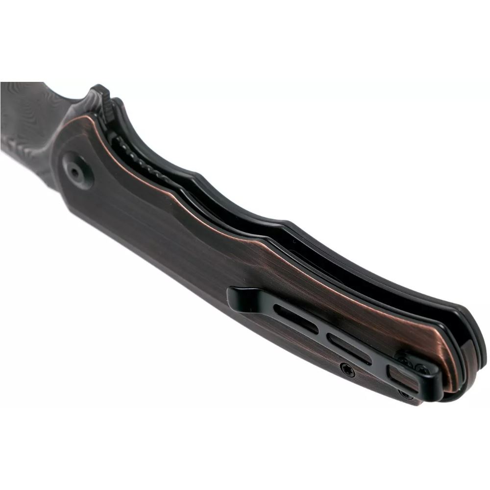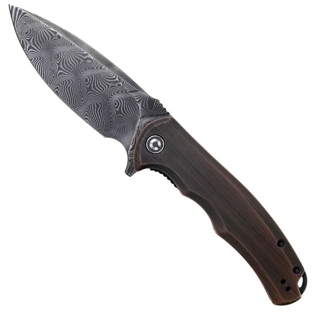 Made of 110 LAYER DAMASCUS STEEL, CIVIVI Praxis blade offers outstanding strength and razor sharp cutting. Praxis features a good looking black hand-rubbed copper handle scales. Ball bearings in the pivot allow the blade opening smoothly. It's not a small knife, but it carries very well, practically disappearing in the pocket, ideal folder for everyday working carry or collection