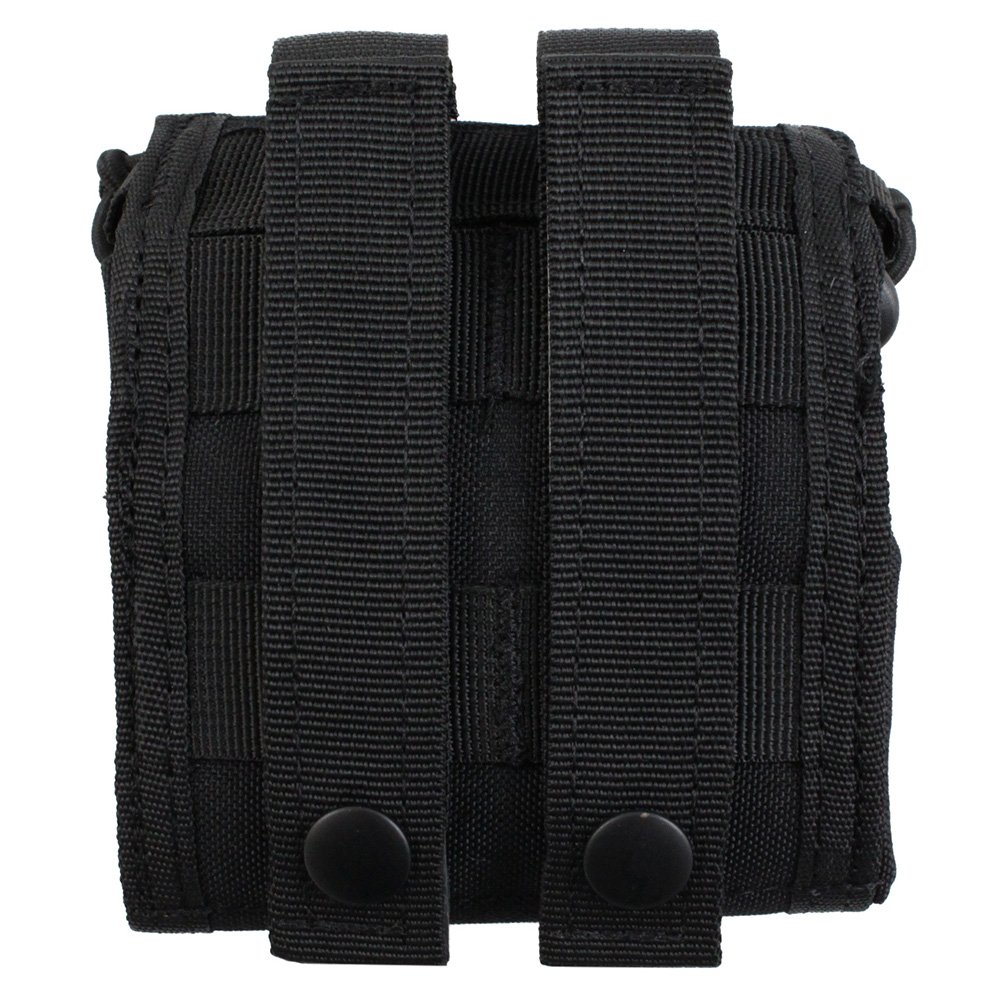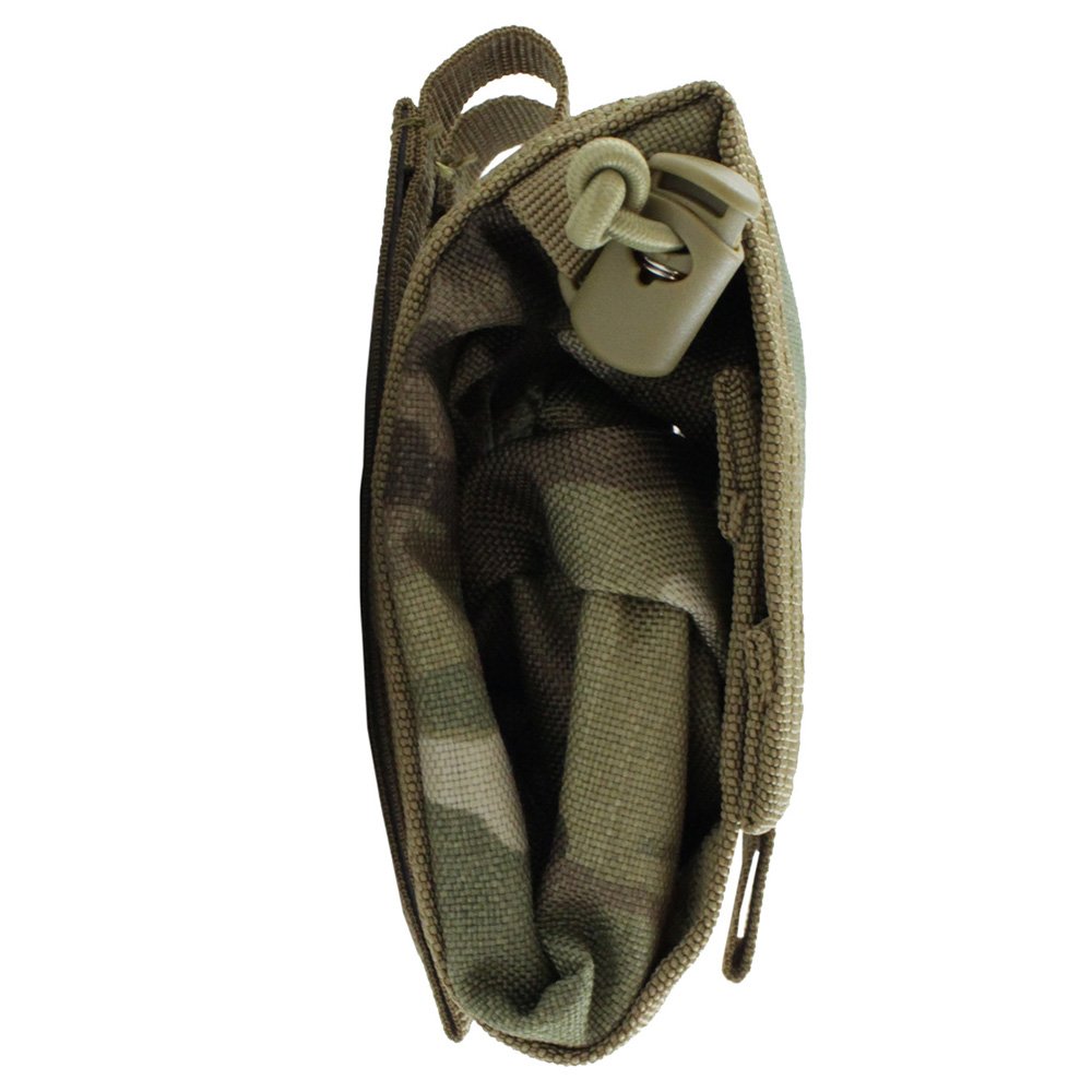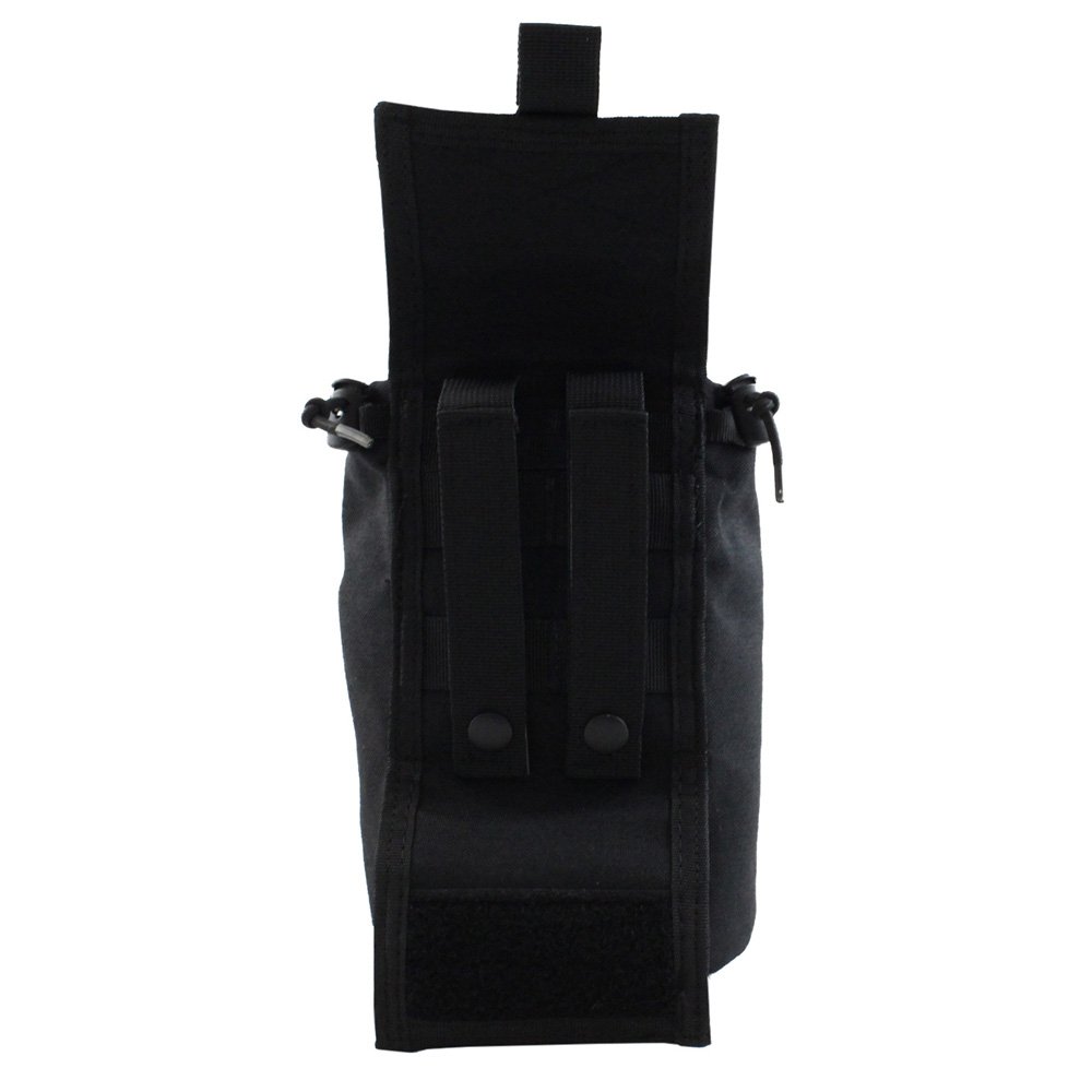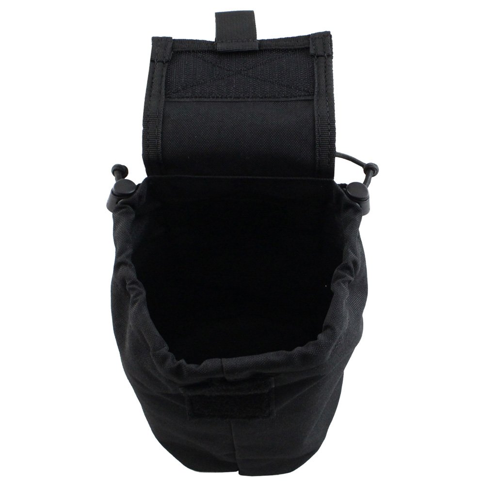 The Raven X MOLLE Roll-Up Dump Pouch can be as large or small as you want it to be. This multi-function utility pouches folds out from a small pocket into a massive dump bag that can hold empty magazines, loose ammo, large water bottles, and a wide range of other field gear. The top can be cinched closed with dual bungee cords and a hook and loop tab. PALS webbing on the back allows for easy attachment to MOLLE compatible vests, bags, and belts. This tactical black model is low-profile and non-reflective.