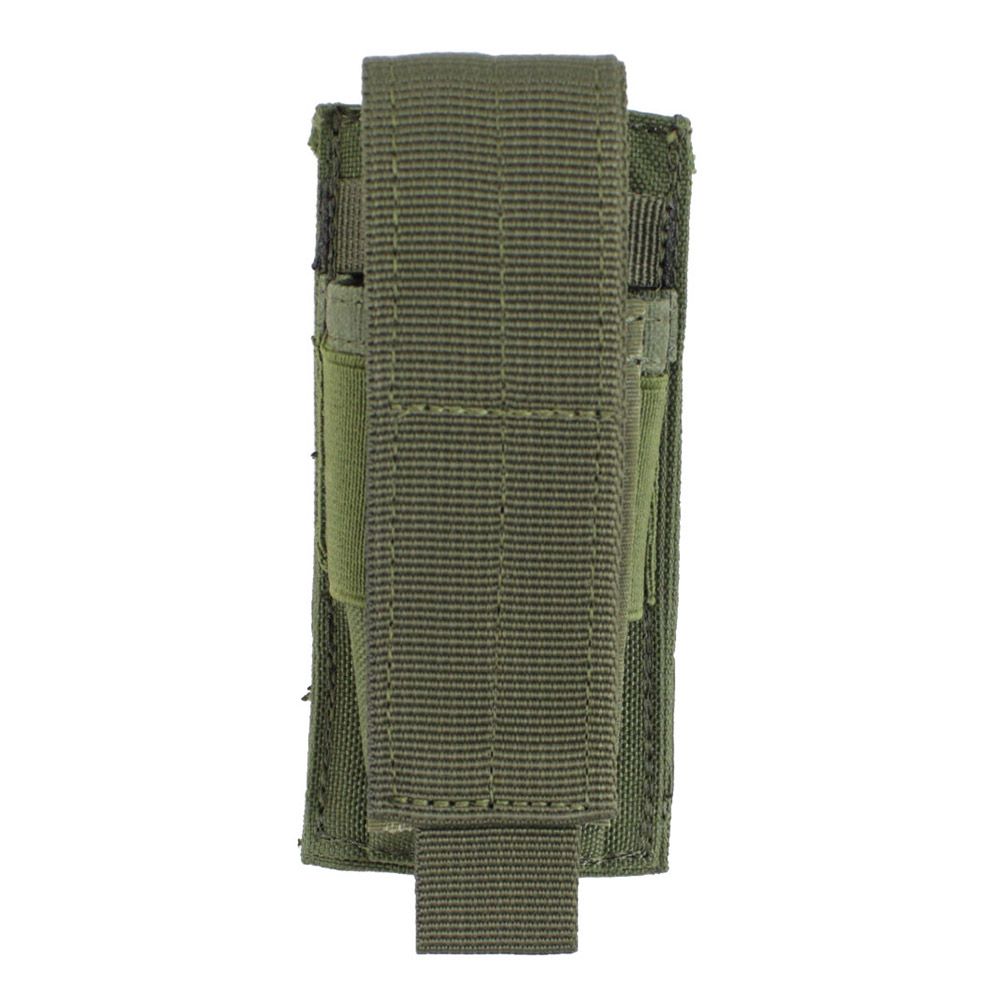 Keep a spare mag ready with the Raven X Pistol Single Mag Pouch. This compact pouch is built from heavy-duty nylon canvas and is designed to hold one pistol magazine securely. It features a hook and loop fastener with an adjustable pull tab to accommodate various mag sizes. An internal elastic retention band keeps your magazine firmly in place, while the drainage grommet at the bottom prevents water buildup. The PALS back strap makes it easy to attach to any MOLLE-compatible gear for a fully modular setup.