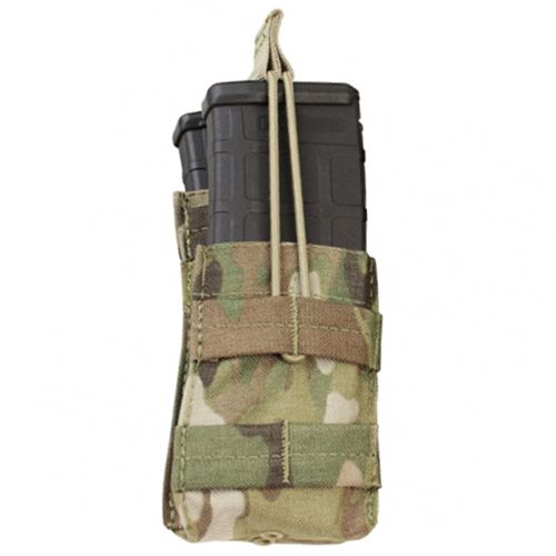 This space efficient Raven X stacker mag pouch can hold two M4 or M16 magazines. The bungee cord open top design allows for instant access and fast reloading. MOLLE webbing on the front and PALS straps on the back allows you to mount this pouch on or with other MOLLE compatible gear.
