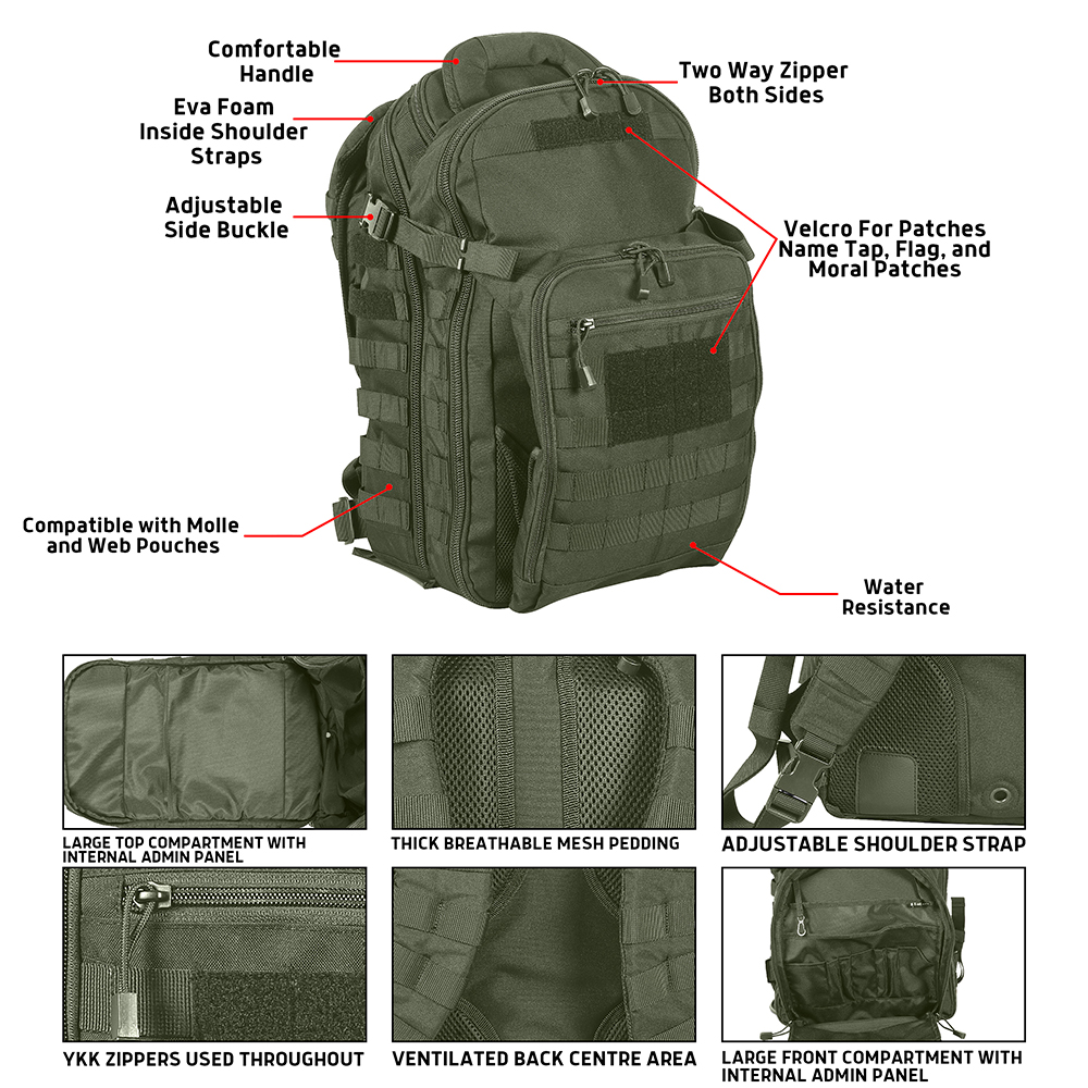 The Raven X Classic Backpack is built for durability and versatility, making it the ideal companion for tactical missions, outdoor adventures, or daily use. With a water-resistant exterior and multiple compartments, it offers ample storage and protection for your gear. The MOLLE-compatible design allows for easy customization with additional pouches, while the adjustable straps and ventilated back panel ensure lasting comfort during extended wear. This backpack combines rugged performance with practical features to meet the demands of any environment.