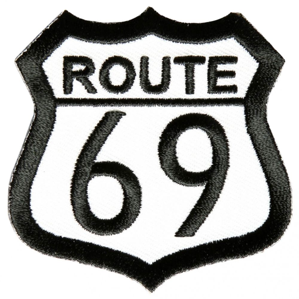 Route 69 patch is embroidered and measures 2.5x2.5 inch. Apply to your clothing by either ironing on or sewing it on. Please do not iron on patches to leather or nylon material. The patch features a nice embroidered die cut border making it easy to sew on when ironing on is not an option. Please remember using a household iron will not produce professional results. Both heat and pressure is required to adhere an iron on patch properly to a garment. This patch is also available for wholesale. Apply for wholesale patches to get the cheapest possible price.