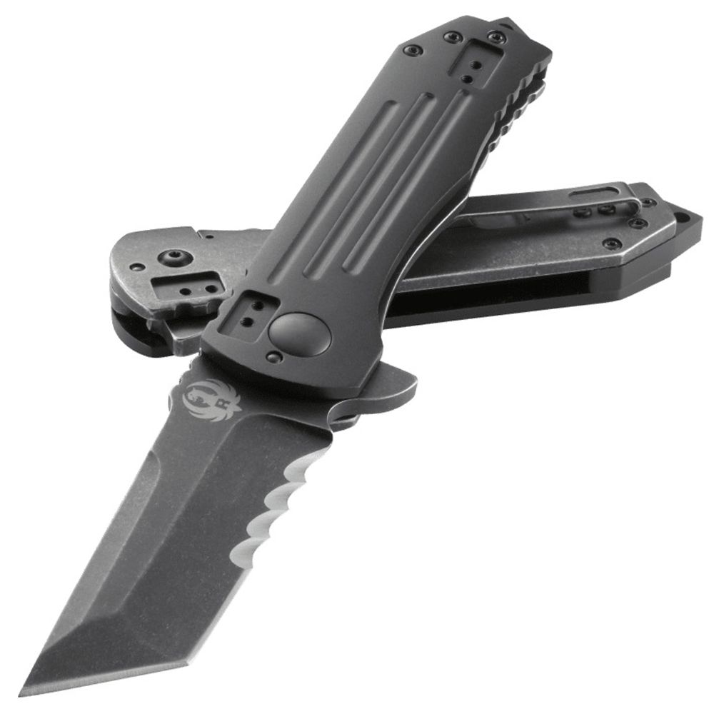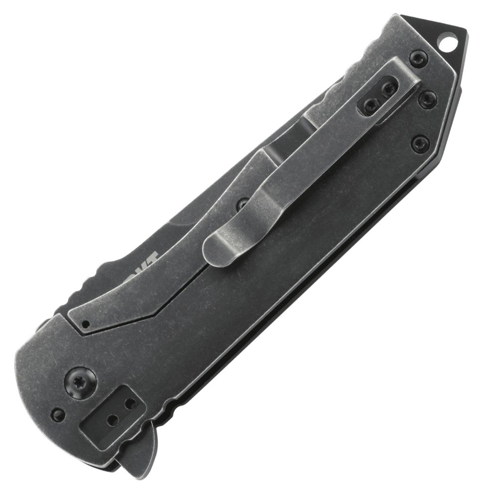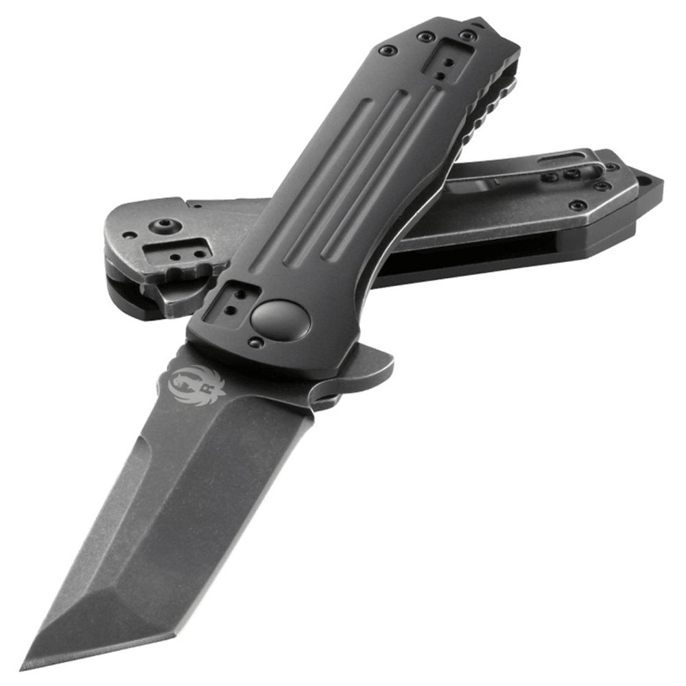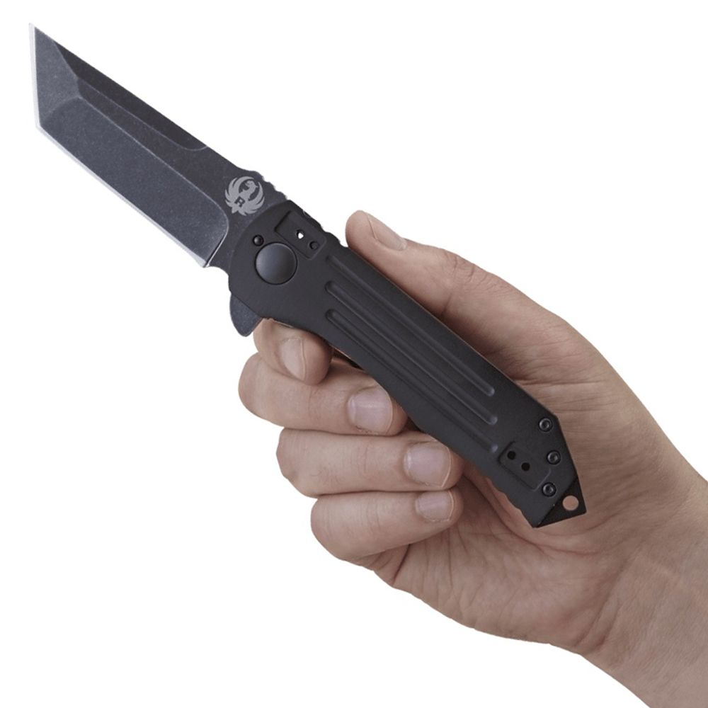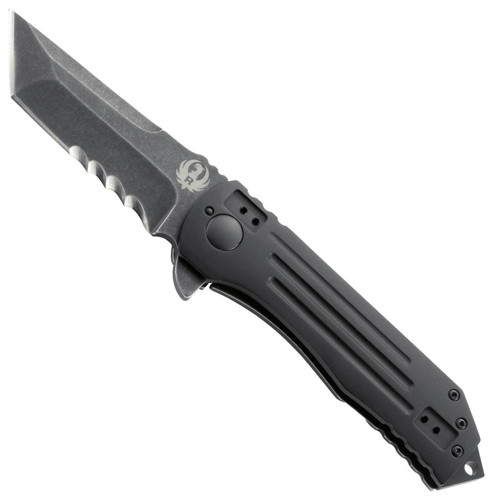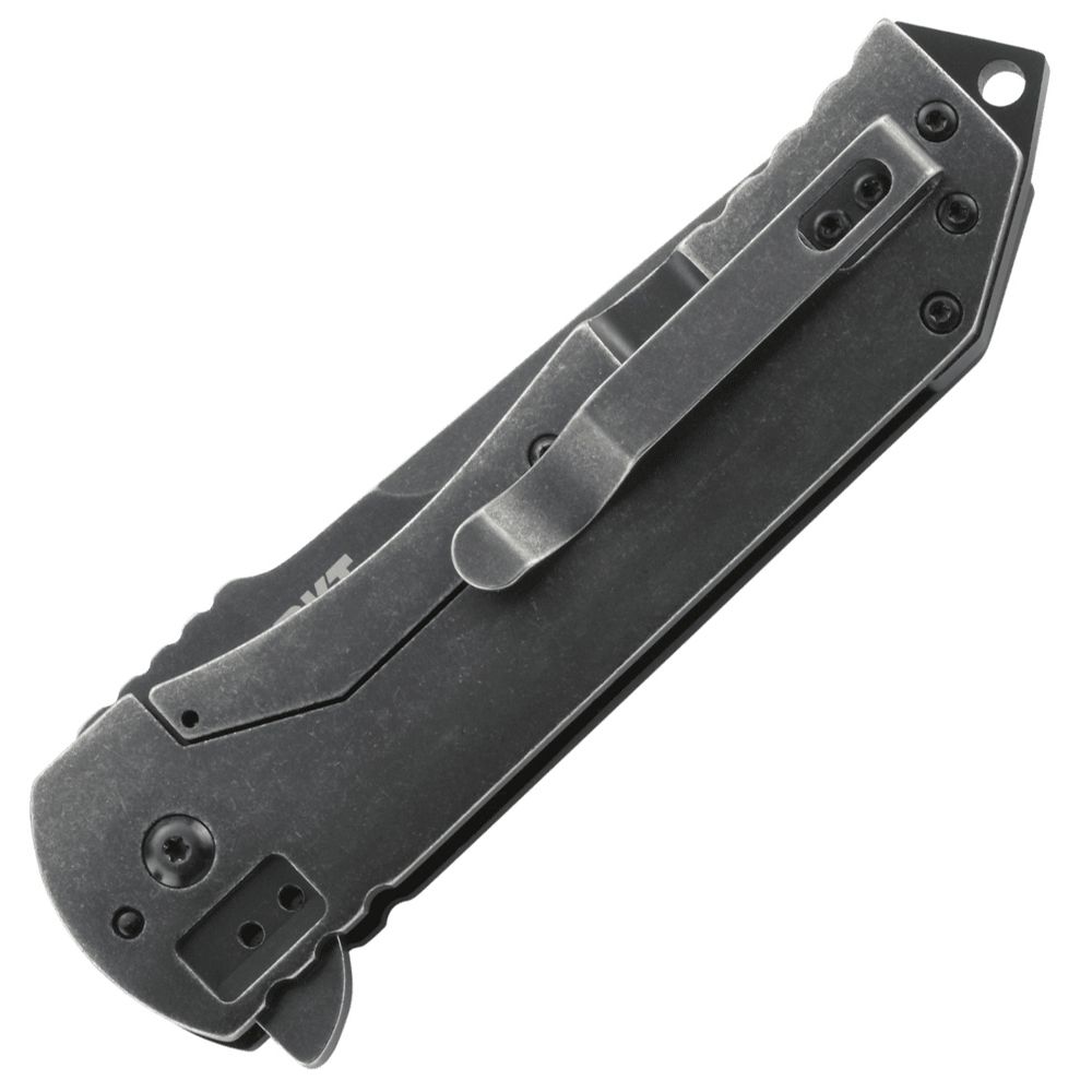 The 2-Stage Compact honors its promises. That’s just how it is for this tactical masterpiece knife built by CRKT. Texas designer Robert Carter did his state and nation proud. Folding tactical knife with frame lock and blade flipper - featuring a black, stonewashed tanto blade; machined hard anodized aluminum & stainless steel handle; and 4-position clip.The 2-Stage Compact is part of the exclusive Ruger® knife line; the line includes designs for everyday carry, hunting, tactical uses and self-preparedness. The knives are crafted in varying sizes and finishes, with an assortment of blade edges. Developed by five master knife-smiths who combined their knowledge of the art with aesthetic details from Ruger firearms, the line offers unique knives with the important features that every good knife should have. These knives are purpose built to be durable and highly functional in the environments where Ruger® customers will expect them to perform.
