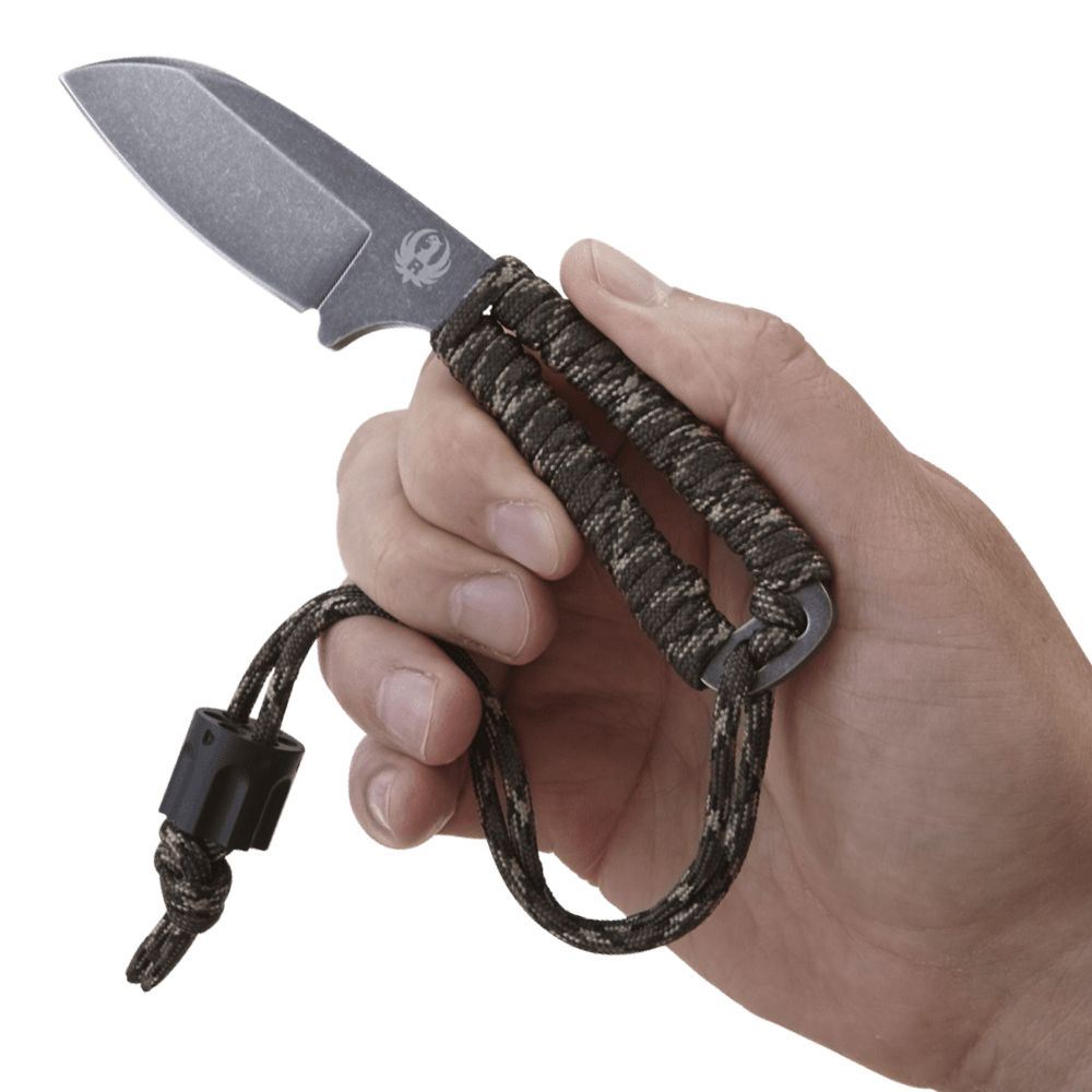 Our Cordite Compact is a stalwart survival knife that fears nothing. Its can-do design by Ryan Johnson of RMJ Tactical salutes Ruger – particularly the black, stonewashed, drop point blade. Featuring a paracord-wrapped, full-tang handle with a unique “revolver cylinder-style” bead; and a multi-position, glass-reinforced nylon sheath.The Cordite Compact is part of the exclusive Ruger® knife line; the line includes designs for everyday carry, hunting, tactical uses and self-preparedness. The knives are crafted in varying sizes and finishes, with an assortment of blade edges. Developed by five master knife-smiths who combined their knowledge of the art with aesthetic details from Ruger® firearms, the line offers unique knives with the important features that every good knife should have. These knives are purpose built to be durable and highly functional in the environments where Ruger® customers will expect them to perform.
