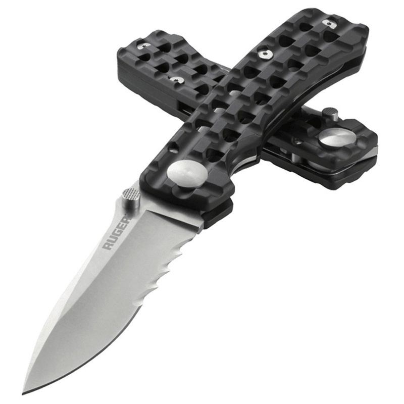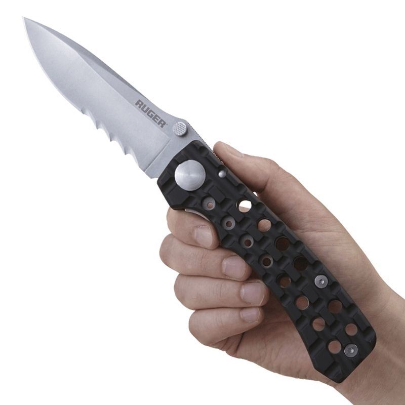 The Go-N-Heavy is what a capable folding knife is supposed to feel like. A tactical folder by CRKT® it was designed for tough times. That’s because Oregon designer Bill Harsey gave it one rugged backbone to stand up to any challenge it meets. Locking liner folding knife with thumb stud - featuring a rugged, stonewashed drop-point blade; rugged, hard anodized sure grip handles; and a nylon-fabric sheath.The Go-N-Heavy is part of the exclusive Ruger® knife line; the line includes designs for everyday carry, hunting, tactical uses and self-preparedness. The knives are crafted in varying sizes and finishes, with an assortment of blade edges. Developed by five master knife-smiths who combined their knowledge of the art with aesthetic details from Ruger® firearms, the line offers unique knives with the important features that every good knife should have. These knives are purpose built to be durable and highly functional in the environments where Ruger® customers will expect them to perform.
