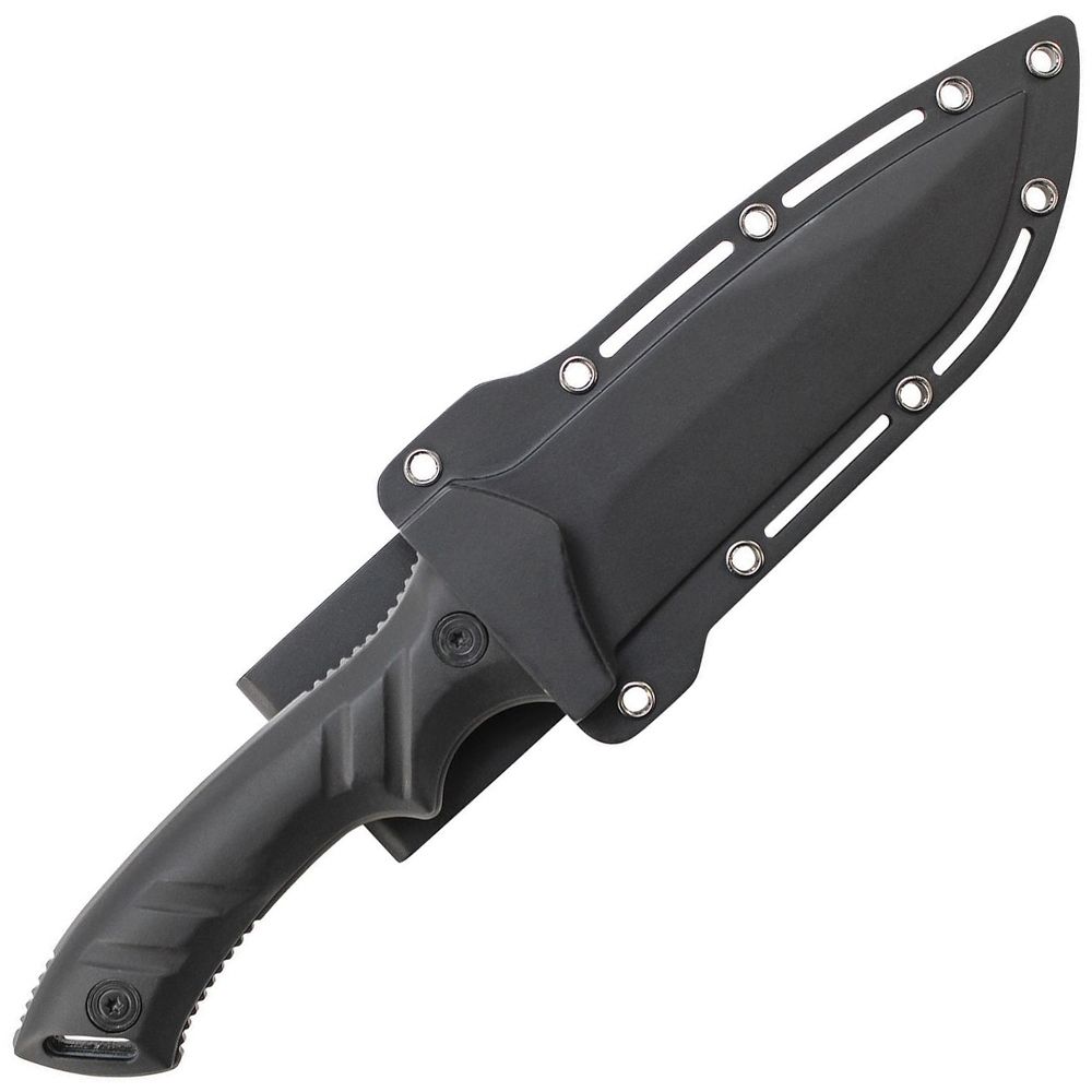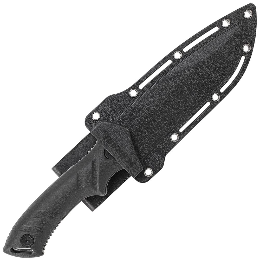 Schrade Full Tang Fixed Blade Knife, 8Cr13MoV High Carbon Stainless Steel Drop Point Blade, TPE Handle Slabs, Lanyard Slot, Nylon Fiber Belt Sheath.