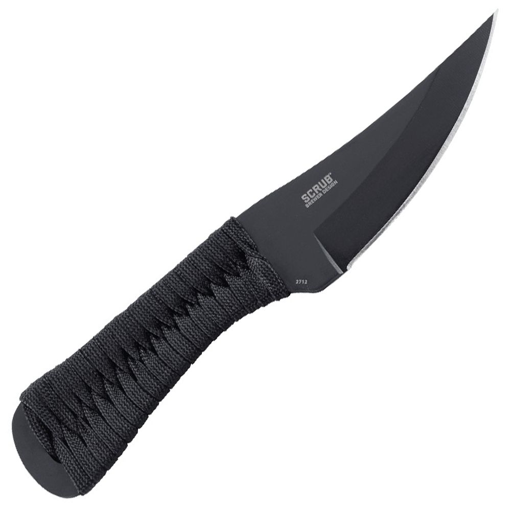 Simple stealth. Moving parts, burly knives, stout blades: they have their place. But in the heat of the moment, when everything is on the line, basic is better. That’s the conviction upon which the Scrub™ tactical fixed blade is built. Don’t get caught without one. As he burns the midnight oil in his crowded garage in LaFayette, Alabama, designer Corey Brewer remembers what it’s all about. His mantra: “if you want to break out and do something that makes you happy then you damn well can.” His first CRKT® design, the Scrub™ is all the proof we need that Corey’s conviction is dead on; he’s on a fast track to asserting himself as a serious designer.This lightweight, compact tactical fixed blade is a paradox: it’s both remarkably simple and packed full of thoughtful details. The 4” blade is carefully modeled after a traditional Persian pesh-kabz, renowned for both its strength and utility. He’s brought both the shapely SK5 carbon steel blade and handles definitively into the future with a magnesium phosphate coating for extreme corrosion resistance. For heightened utility options—from duty belt to covert carry—he’s wrapped both the handles and parts of the glass-reinforced nylon sheath with paracord.The Scrub damn simple, damn near perfect.