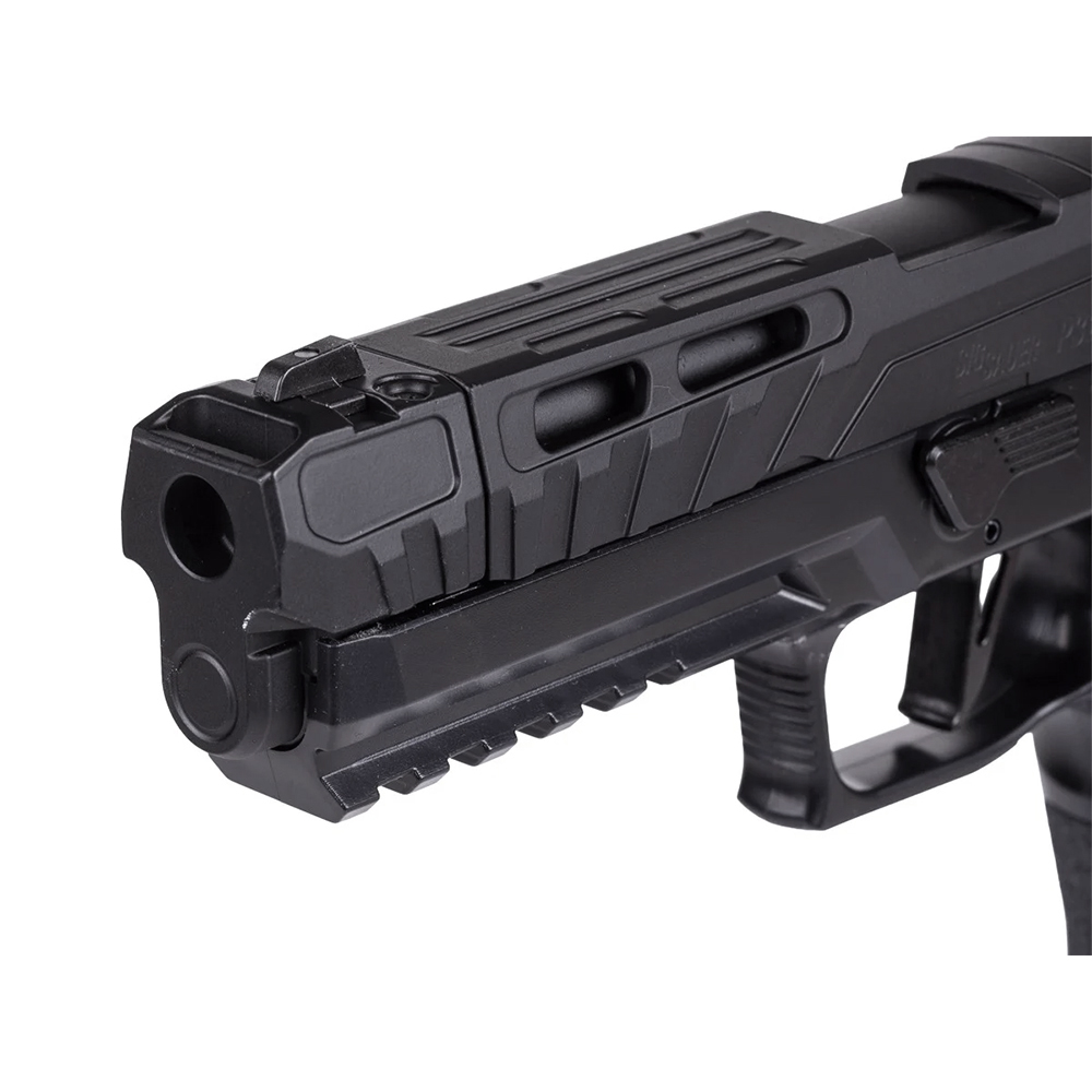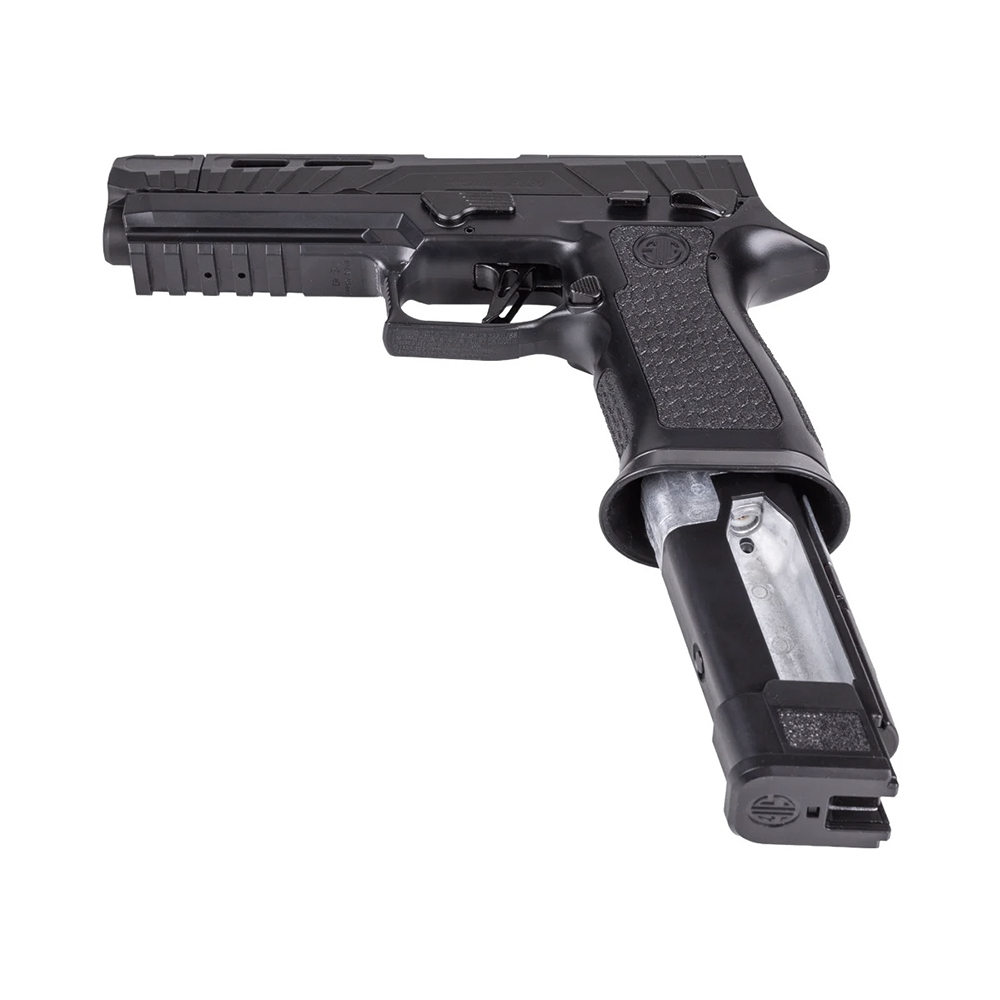 SIG Sauer Spectre Comp Pellet Pistol delivers a premium shooting experience with realistic blowback action and a full metal slide for added recoil feel. Designed for performance and handling, it features a rapid pellet magazine system, tool-free CO2 loading, and a textured grip for improved control.