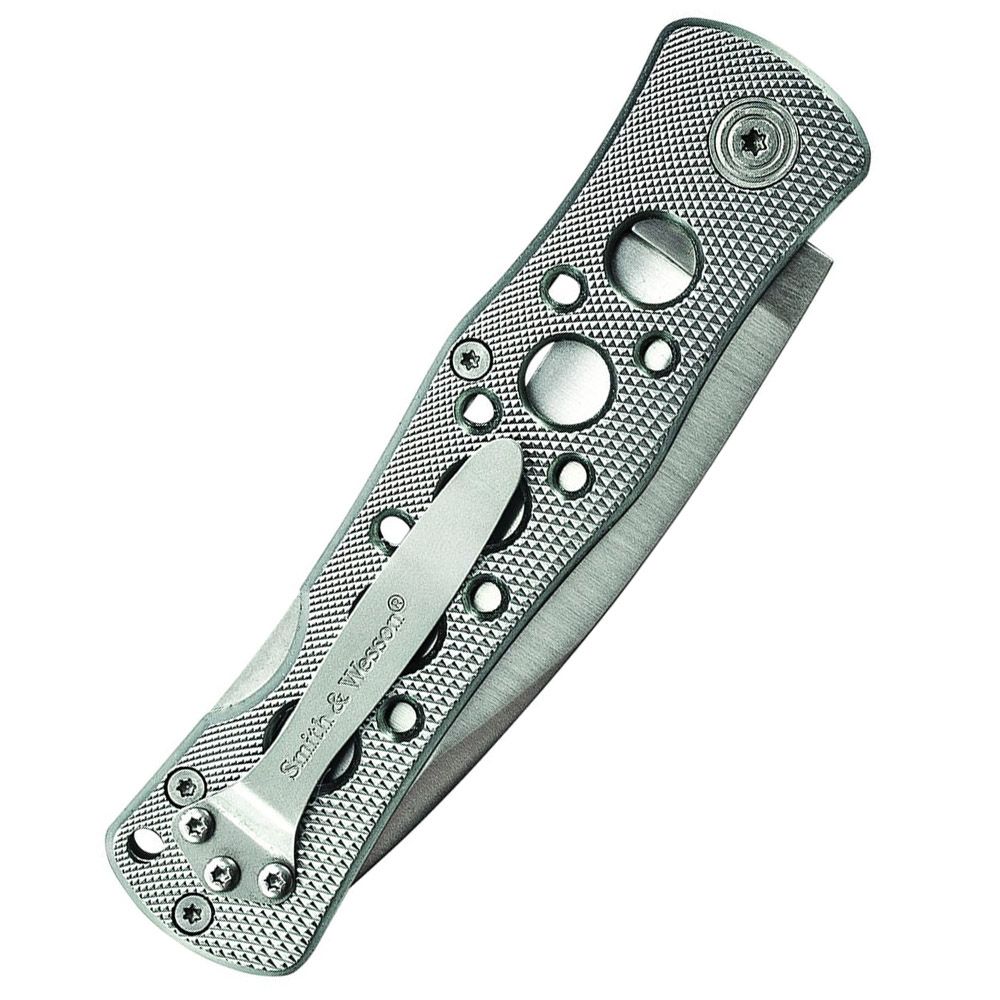 Smith & Wesson Extreme Ops Lockback Folding Knife, 7Cr17 High Carbon Stainless Steel Drop Point Blade with Nail Pull, Textured Aluminum Handle with Lanyard Hole and Pocket Clip