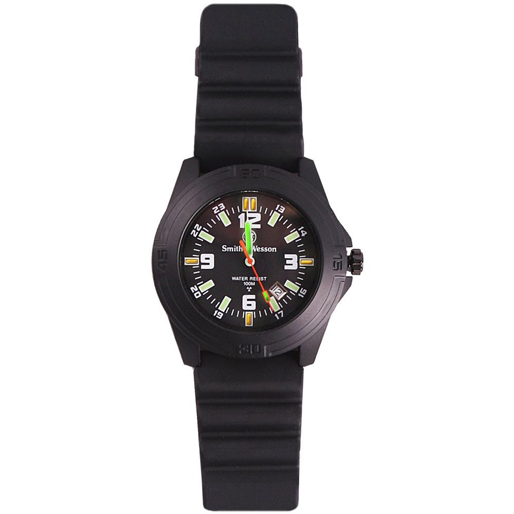 Smith and Wesson Tritium soldier watch is extremely durable. The watch is water resistant up to 100 meters and the body of the watch is shock resistant. The Japanese movement precision quartz watch is made of microtec tritium tubes. It has stainless steel case back. The watch has stunning black face with date. The face is completely scratch resistant as the mineral crystals protect the face. It has adjustable rubber made wrist band. The wrist band is smooth and soft on your skin. It includes display stand. It is neatly packed in a box. The watch is worth for your money.