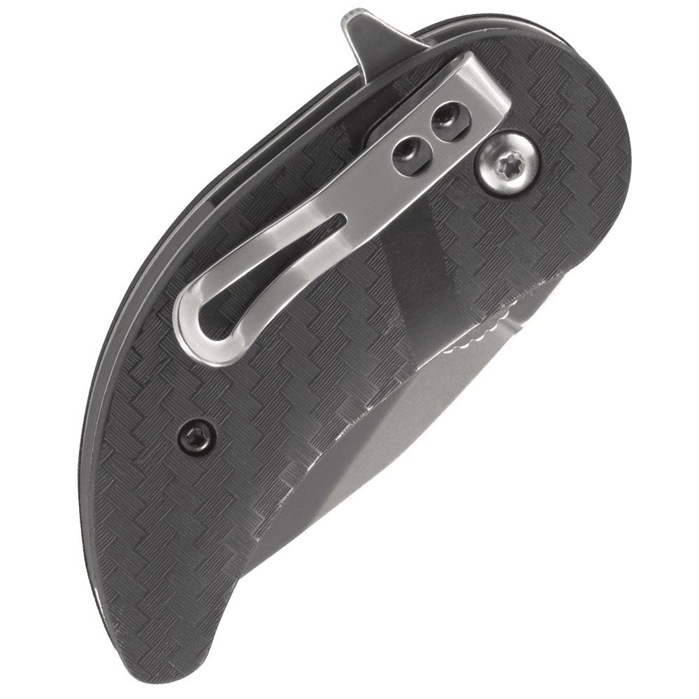 Though compact, the modified drop point blade is surprisingly burly and capable once it’s deployed from its glass-reinforced nylon handle. The subtle carbon fiber texture improves grip and turns heads as it tears through anything that dares to underestimate it. It’ll never skip a beat, and neither will you when the locking liner locks the blade in place.