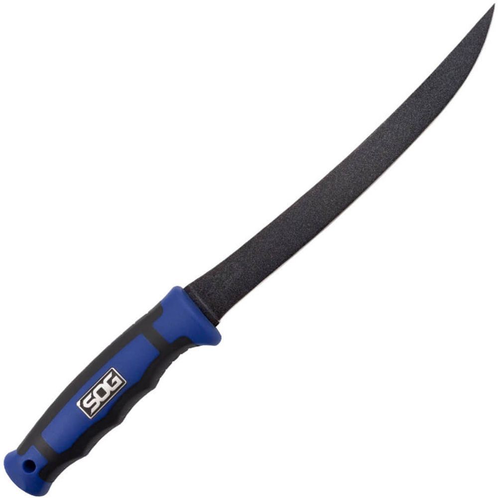 The SOG Fillet Knife is everything you want in a fillet knife. SOG's purpose-driven fillet knife is definitely a keeper. The soft grippy handle and the flexible non-stick blade gives you maximum control and comfort while filleting. The included hard molded nylon sheath has a built-in single-stage sharpener, line cutter, and holes for easy drainage. The SOG Fillet Knives come in two blade lengths: 6.0-inch for smaller fish and 7.5-inch for your all-purpose fillet use.