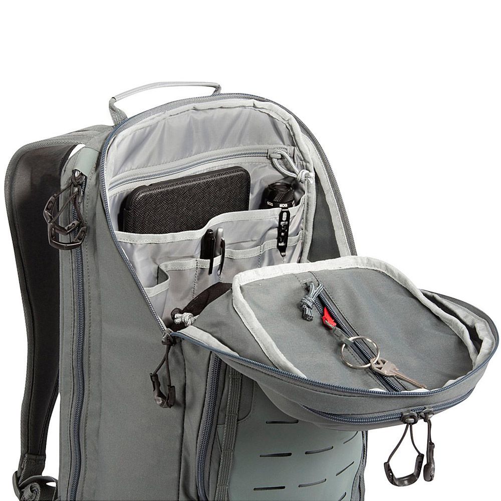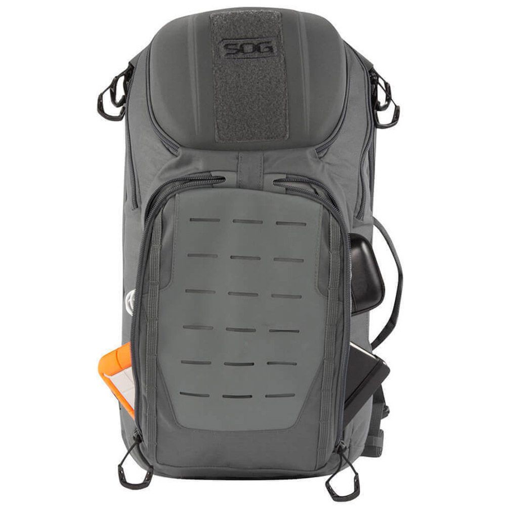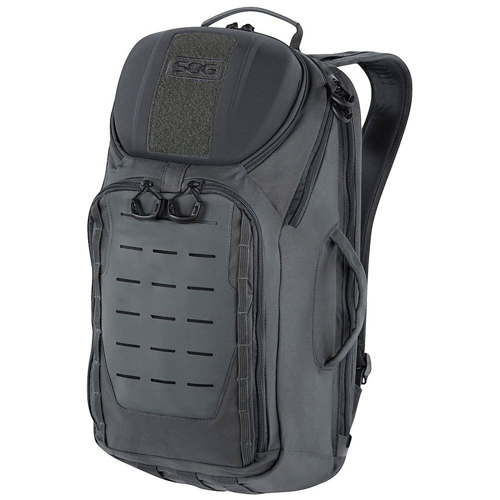 The SOG TOC is the ultimate 20L daypack for an urban warrior or forest adventurer. Its light overall weight makes it easy to tote around. The quick-adjust shoulder straps, padded hip belt, and rigid suspension keep it comfortable all day long. As the Tactical Operating Center, this pack houses plenty of options for storage and organization: the main compartment has multiple interior zippered pockets and small sleeves, the molded top contains a small organizing system for quick access items, two side access pockets live on the front of the pack, and a pass-through side access laptop compartment keeps your notebook safe. Whether you are hopping on the subway or jumping over creeks, the TOC makes a great companion for the modern user all day long.