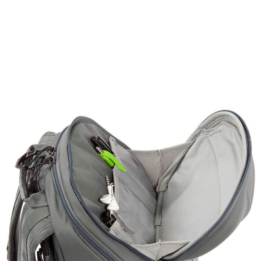 - Impact-resistant top panel with internal organization to safely secure and stow valuables such as glasses, camera, binoculars, and phone.