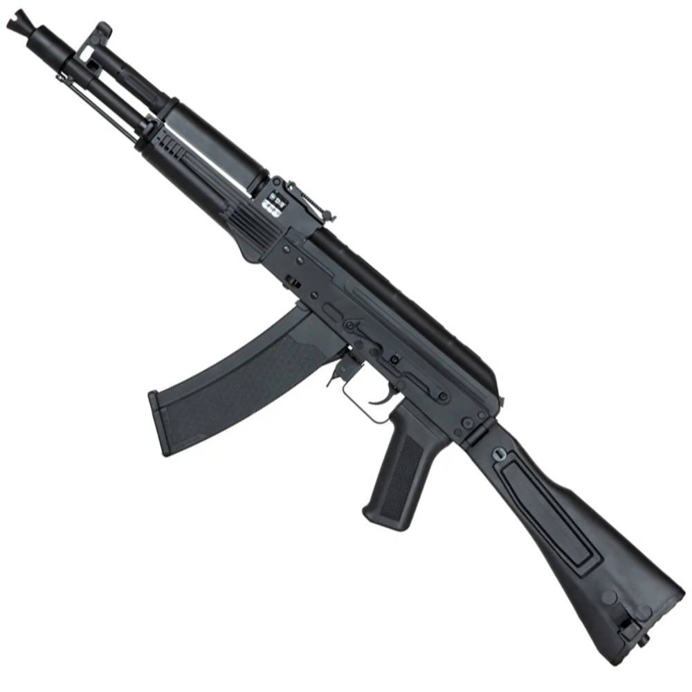 The Specna Arms J-Series™ CORE™ carbines are made primarily from durable nylon fiber-reinforced polymer, making the replica very light and comfortable. The model in question is made of a polymer flask, pistol grip, body extrusion including flask holder, bed with gas tube cap, gas tube, and base of the musket.