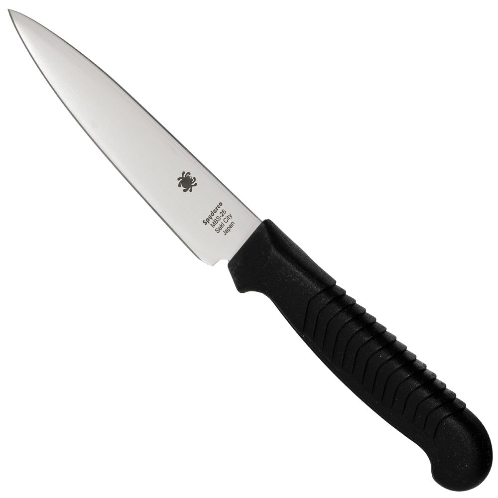 The K05 is available with a black handle and your choice of a Plain Edge or a Spyder Edge blade with a unique two-step serration pattern that protects the edge from dulling on cutting boards. The Spyder Edge version is also available with a red handle.