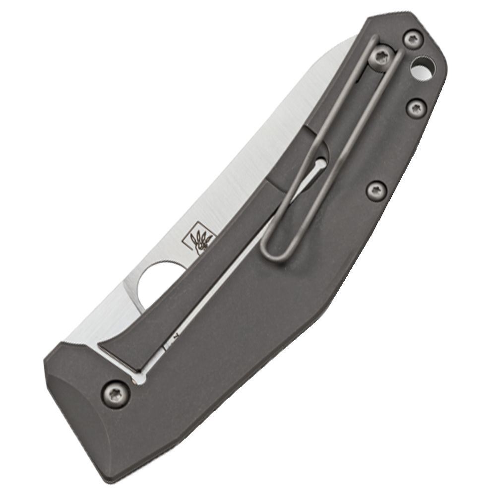To reduce weight, optimize balance, and simplify cleaning, the Spydiechef features an open-backed handle constructed with two precision-machined solid titanium scales. The reverse-side scale houses a stout Reeve Integral Lock (R.I.L.) mechanism that locks the blade firmly open when in use. For additional security when working around water, the handle also includes a lined lanyard hole for easy attachment of safety lines and lanyards and a reversible deep-pocket wire clip for convenient, ambidextrous carry and quick tip-up access.