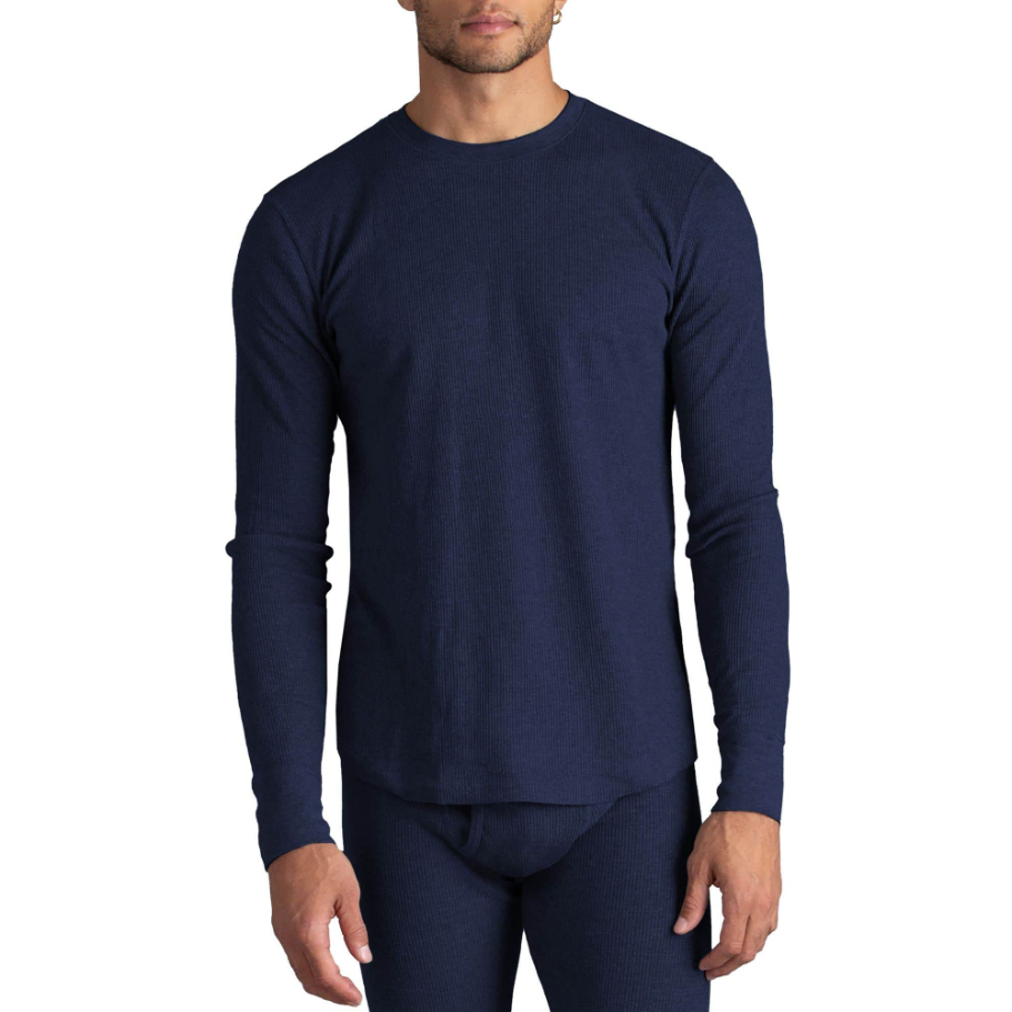 Our cotton/poly thermal shirt is made from a waffle knit fabric that creates pockets of trapped warm air throughout the garment to insulate your body, making it ideal for moderate to very cold weather. Our thermal crew neck features set in sleeves, cuffs reinforced with spandex for comfort and shape retention, and is 50% cotton/50% polyester for twice the wear of all cotton. Choose from black mix or navy mix.