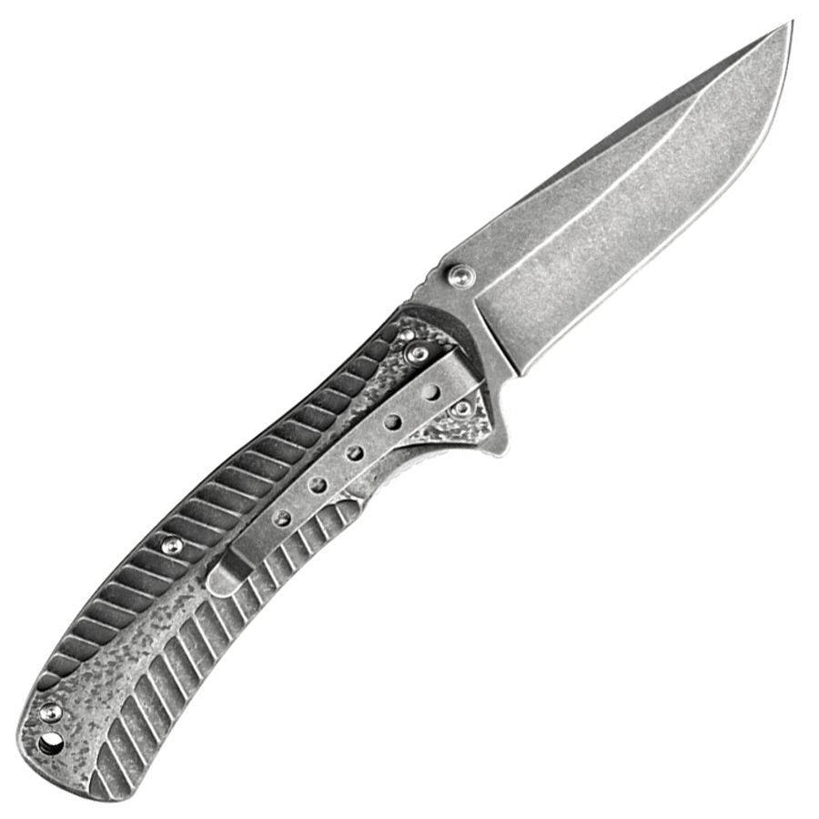 The Starter is equipped with SpeedSafe assisted opening for fast and easy one-handed opening. It opens neatly with the built-in flipper or thumb stud. A liner lock safely secures the blade open during use, and then closes easily for storage or carry. The all-steel design really shows off the BlackWash finish.