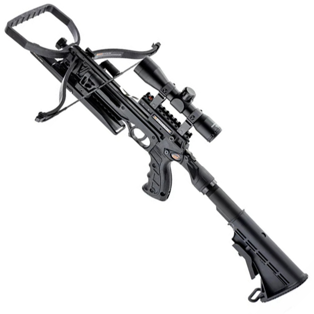 Featuring a 150-pound limb that ensures accuracy and impact for small-to-medium game, this crossbow stands out for its practical, straightforward assembly and rugged design, which make it dependable in even the toughest conditions. Complete with a 4x scope and versatile arrow compatibility, the AR-6 is an essential addition to any well-prepared survival kit.
