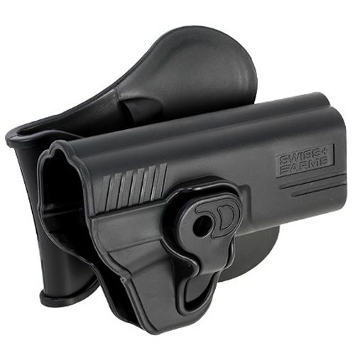 There's no time to lose on the battlefield. Keep your weapon at the ready with the Swiss Arms MP9/MP40 Belt Holster. This durable polymer holster is designed for 360 angle adjustment and comes with a quick lock trigger guard system. Compatible with MP9 and MP40 series pistols.
