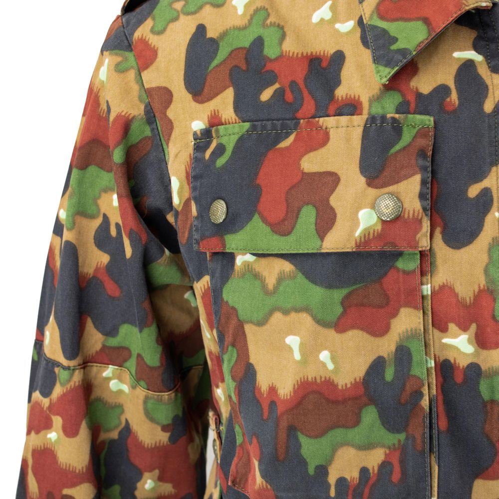 The Swiss military made these lightweight jackets out of one of the most popular camo patterns to come out of the 1990s—Alpenflage. In typical Swiss fashion, everything about these jackets is sturdy and well made. They consist of the following; two breast pocket, a zippered front, a sturdy cotton/poly mix material, and 6-inch zippered sleeves. This particular lot comes used and in very good condition.
