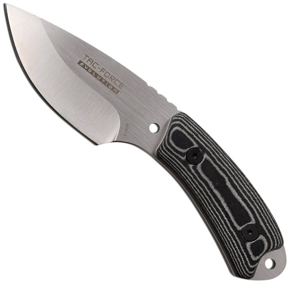 The TacForce MCTFE-FIX001-BK Evolution Fixed Blade Knife is a tough and reliable tool designed for outdoor and tactical applications. It features a durable fixed blade that delivers excellent cutting performance, while the black-coated finish adds extra corrosion resistance and a sleek, tactical look. The ergonomic handle ensures a secure and comfortable grip, making it ideal for extended use. Whether for survival, camping, or heavy-duty tasks, the MCTFE-FIX001-BK is built to withstand challenging environments with strength and precision.