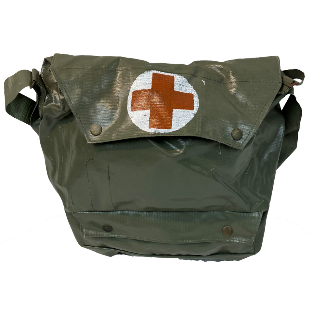 The Tactical Czech OD Medical Bag with Strap is an authentic military surplus item built to meet the demands of field medics. Originally issued by the Czech military, this durable bag is made from rubberized canvas for excellent weather resistance. With a spacious main compartment, four internal dividers, and an additional lower compartment, it’s perfect for organizing essential supplies. The adjustable shoulder strap ensures comfortable carrying, while the bold Red Cross emblem adds classic military appeal. Ideal for collectors, outdoor survivalists, or those in need of a reliable utility bag.