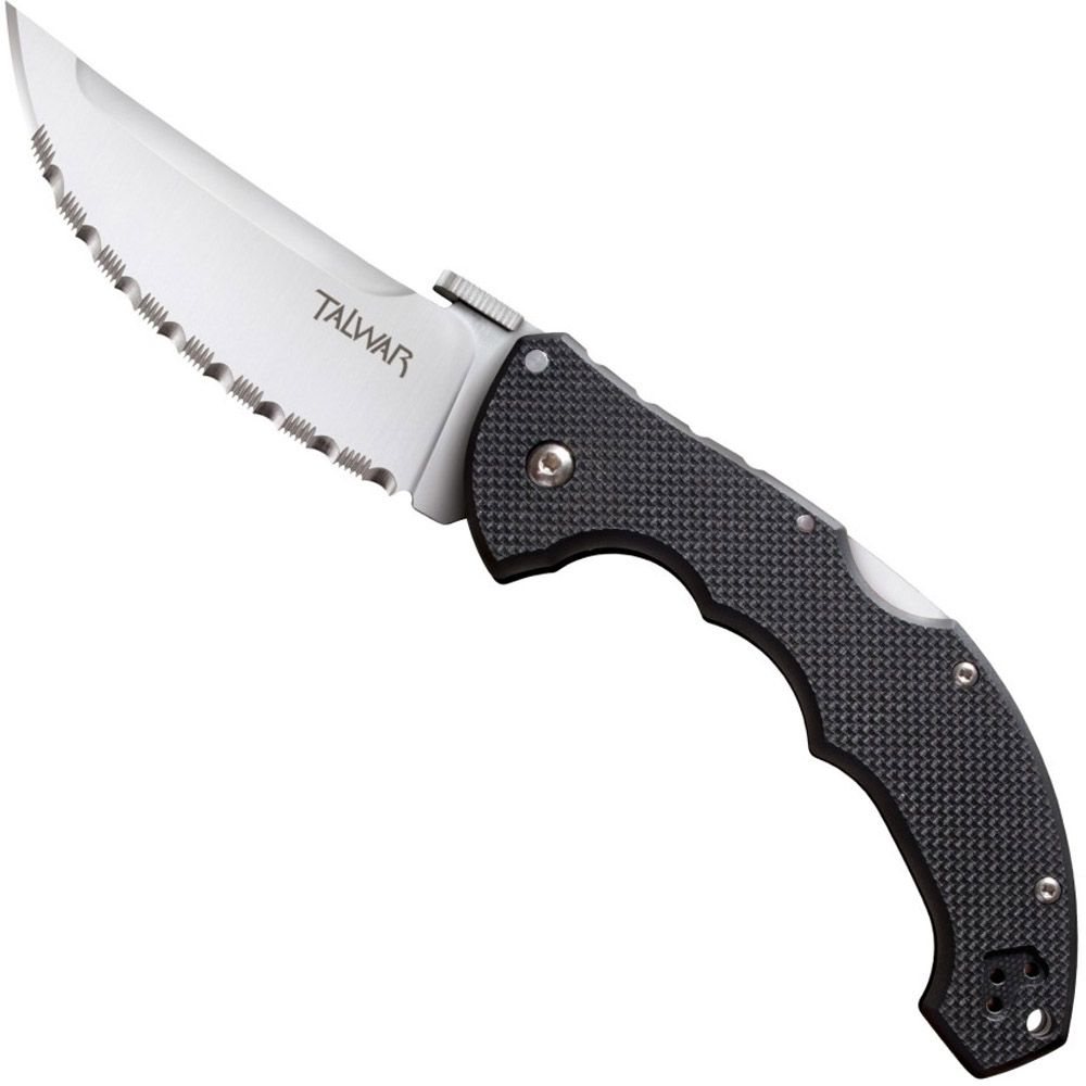 During the 1800's the British Empire was Hell bent on gobbling up as much of the Indian sub-continent as they could, seizing dominion with massive fire power and the point of the bayonet. But when the British attempted to subdue the sikhs and other martial clans they received a very Rude awakening! suddenly soldiers and cavalrymen alike began literally losing their heads - not to mention their arms and legs- to a fearful indo-persian sword called the talwar! with it's razor sharp broad, curved blade it stopped the British cold in many battles and inflicted unheard of losses and the most ghastly wounds imaginable. Now, almost two hundred years later Cold Steel has harnessed the fearsome cutting power of one of the world's most renowned swords in a Tactical folder that we believe is truly worthy of the name talwar.