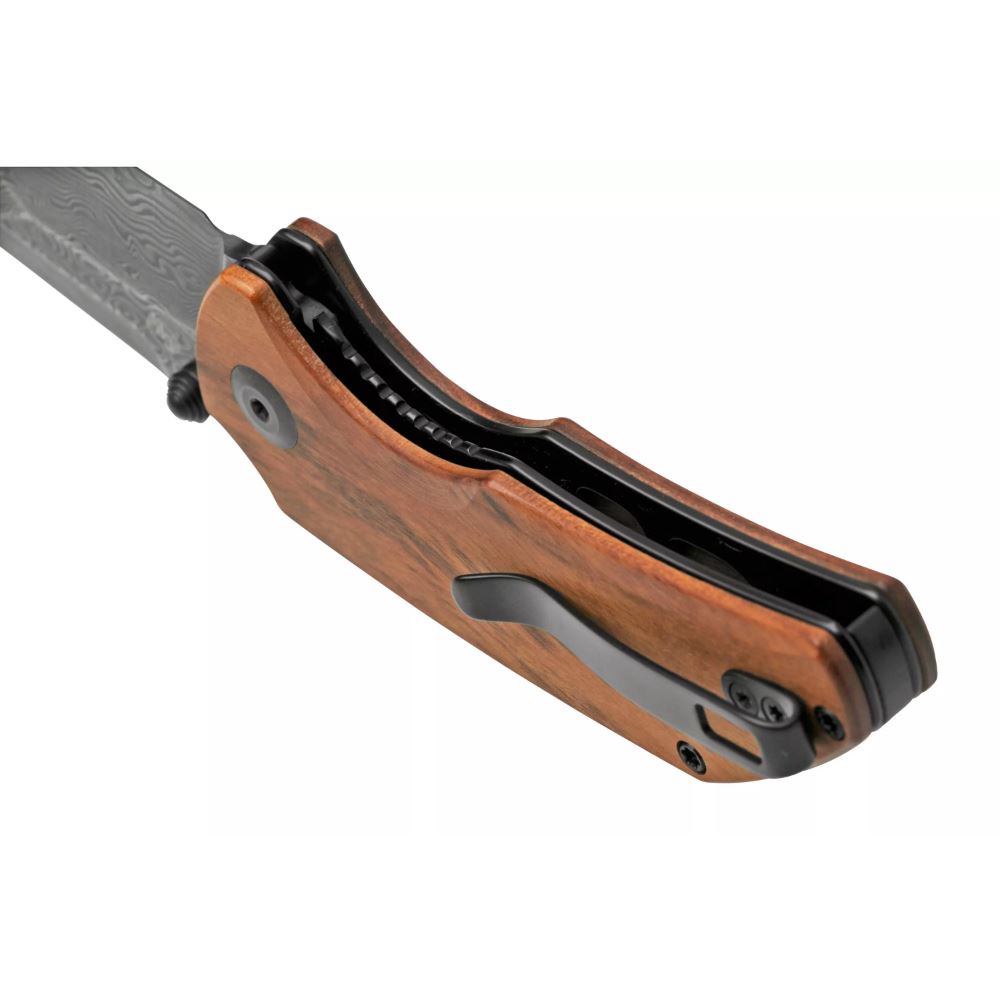 Overall Length: 6.48" / 164.6mmWidth: 1.39" / 35.4mmOverall Height(Include Clip): 0.68" / 17.2mmBlade Length: 2.69" / 68.4mmClosed Length: 3.79" / 96.2mmBlade Thickness: 0.12" / 3mmHandle Thickness: 0.47" / 12mmKnife Weight: 3.35oz / 95.1gBlade Material: DamascusBlade Hardness: 58-60HRCBlade Grind: Compound With Hollow Ground Primary Bevel & Flat Ground TipBlade Finish: Black Hand RubbedBlade Type: TantoHandle Material: Cuibourtia WoodHandle Color/Finish: WoodLiner Material: Stainless SteelLiner Color/Finish: BlackBackspacer Material: G10Backspacer Color/Finish: BlackPocket Clip: Tip-Up, L/RClip Material: Stainless SteelScrews Material: Stainless SteelPivot Assembly: Caged Ceramic Ball BearingLocking Mechanism: Liner Lock