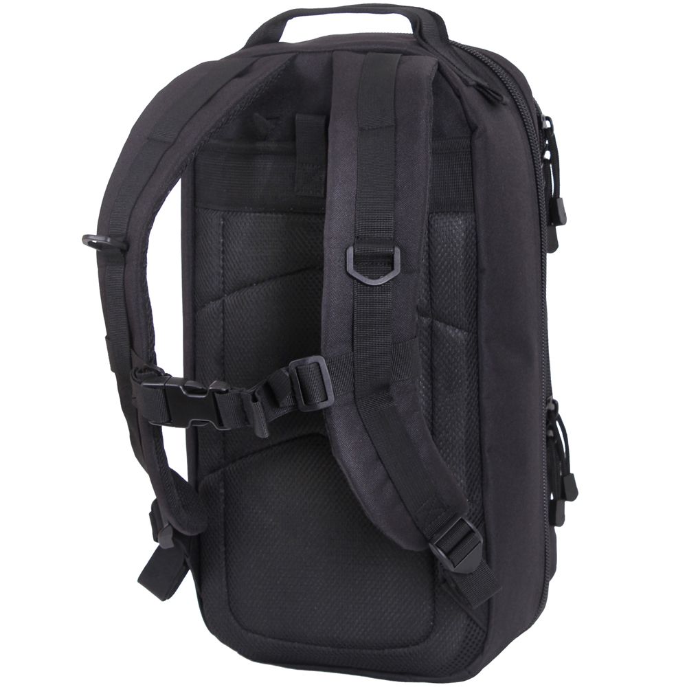 Everyday Carry Transport Pack provides discreet storage of essential gear with an unassuming outward appearance. The interior of the tactical pack has been engineered with laser cut MOLLE panel (15"; x 5";), which provides ample storage options for your tactical gear. Gain quick and easy access to the inside of the EDC backpack with the double zipper full lay flat opening. In addition, the interior of the main compartment features a mesh pocket and hydration compartment. For long lasting comfort, the bag has been designed with contoured shoulder straps with D-rings, sternum strap and padded mesh back.EDC Laser Cut MOLLE backpack is also equipped with two external pockets; the upper pocket has been constructed with a hard molded shell, making it great for sunglasses and other fragile items. From military and tactical environments to everyday use, EDC Transport pack has got you covered.