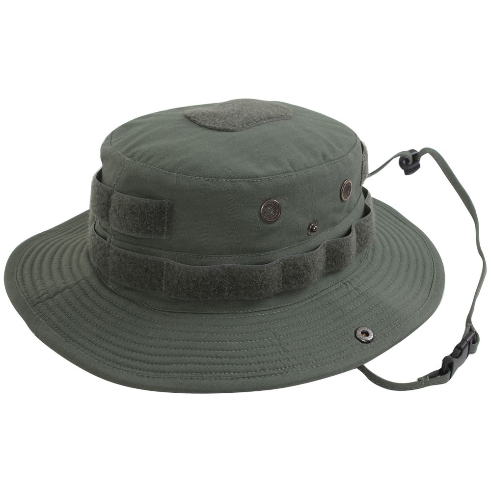 Tactical Boonie Hat Features A 100% Cotton Rip-Stop Fabric With Outer Band With Branch Loops And Loop Fastener, Front And Back Band With Loop Fastener, Top Patch With Loop Fastener That Is Great For Moral Patches, Hidden Interior Pocket, Adjustable Chin Strap With Quick Release Buckle, Snaps On Each Side, And 2 Screened Bents On Each Side To Keep Your Head Cool.