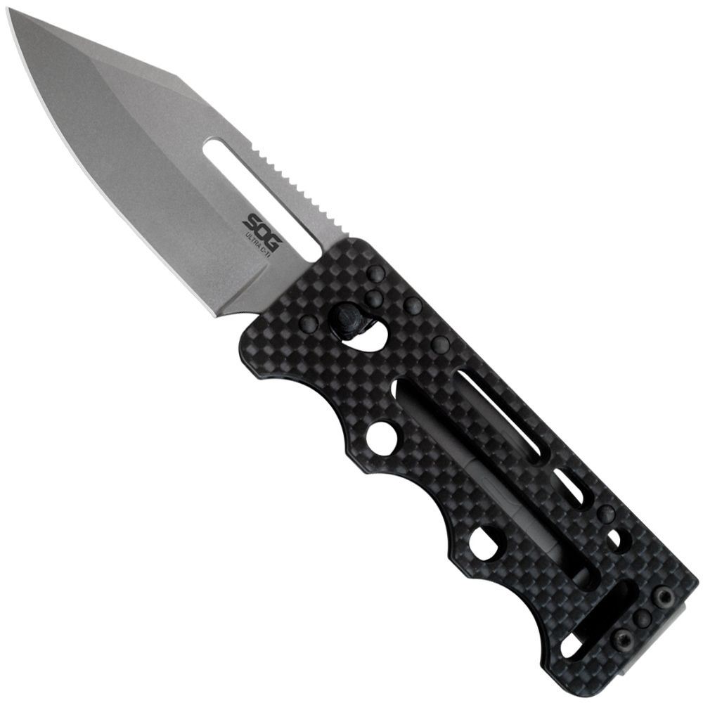 The Ultra C-Ti is a minimalist’s dream knife. This pocket-sized folder features a short, but wide VG-10 clip point blade with an elongated thumb hole for easy one-hand opening. A skeletonized carbon fiber handle keeps this knife ultra-light weight for easy and comfortable carry in even the smallest of pockets. The burly titanium clip can be fixed to any bag strap, or used as a fully functional money and credit card clip. The handle is molded with three finger grooves and equipped with a study arc-lock for total security while cutting.