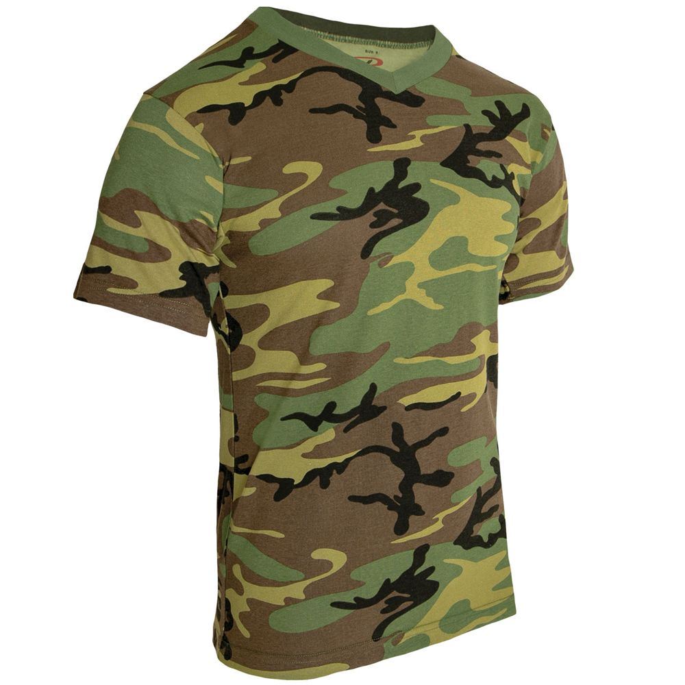Camo V-Neck T-Shirt is soft, comfortable and great for everyday wear. Made from a super soft and comfortable 60% cotton / 40% polyester fabric blend, camo tees are perfect for military use, airsoft/paintball teams, and everyday fashion. Featuring a regular fit cut with a v-neck and tagless label, camouflage v-neck shirt is designed to offer optimal comfort and a relaxed look. With screen printing capabilities, you can add your own logo, graphics or features to these military camo shirts.