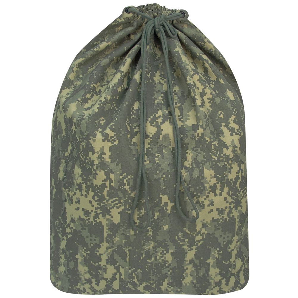 Digital Camouflage GI type laundry bag is made of heavy duty cotton canvas material. It is lightweight yet durable and offers a convenient way to keep your dirty clothes in an organized manner. The bag is perfect for camping and other trips. You can even use it in home or in college hostel to keep dirty laundry. It comes with drawstring closure, so dirty clothes will not slip off from the bag. It comes in army combat uniform camo print, which makes it ideal for any army men. As it is lightweight, you can carry it easily to the cleaner or laundry.