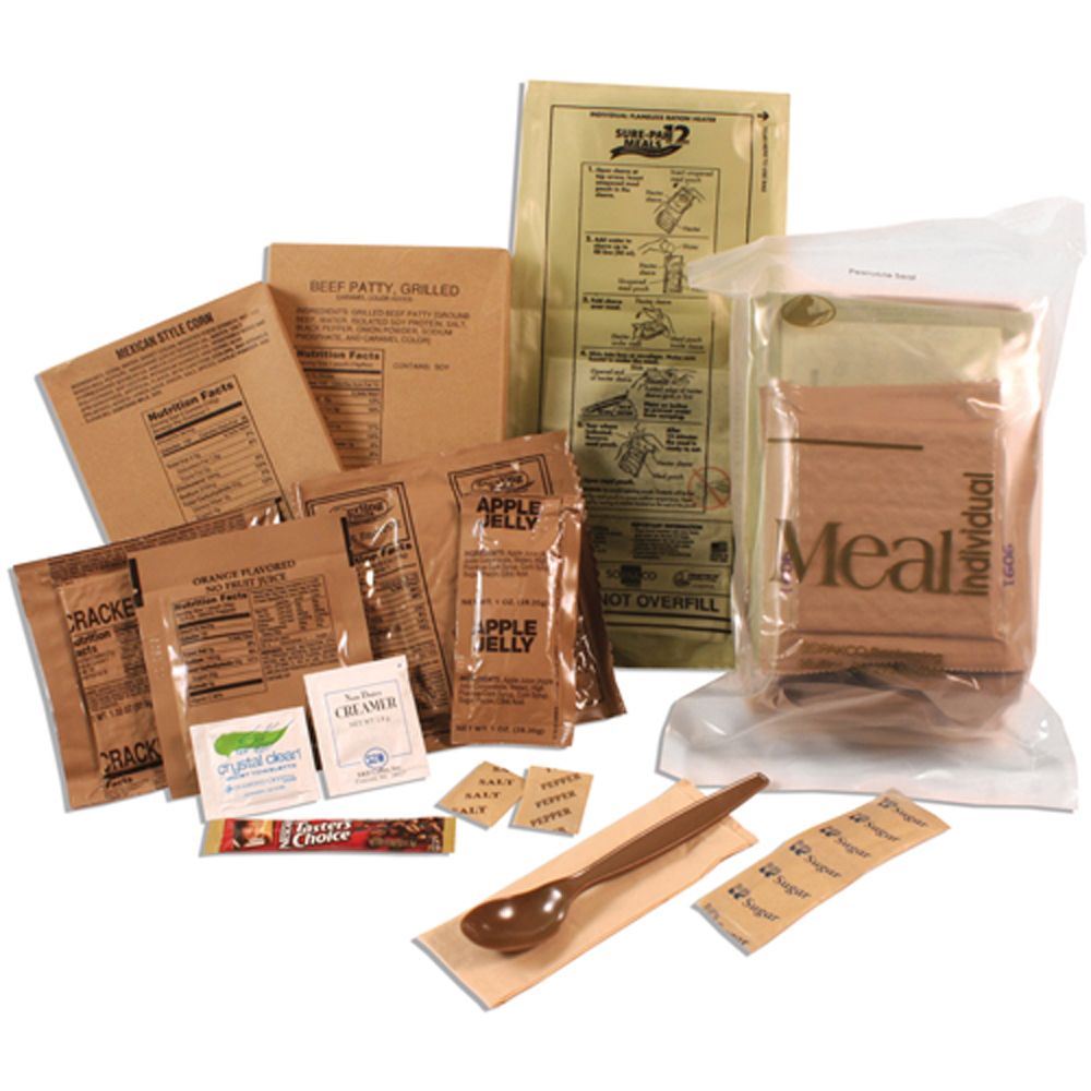 Sure-pak 12 meals (12 of each: entree, side dish, desserts, cracker packs, spreads, beverages, and coffees along with condiments)
