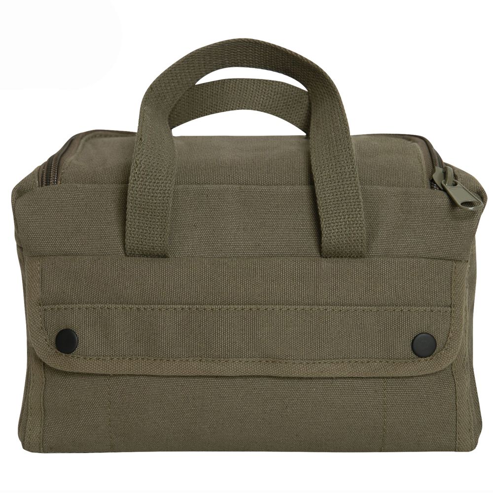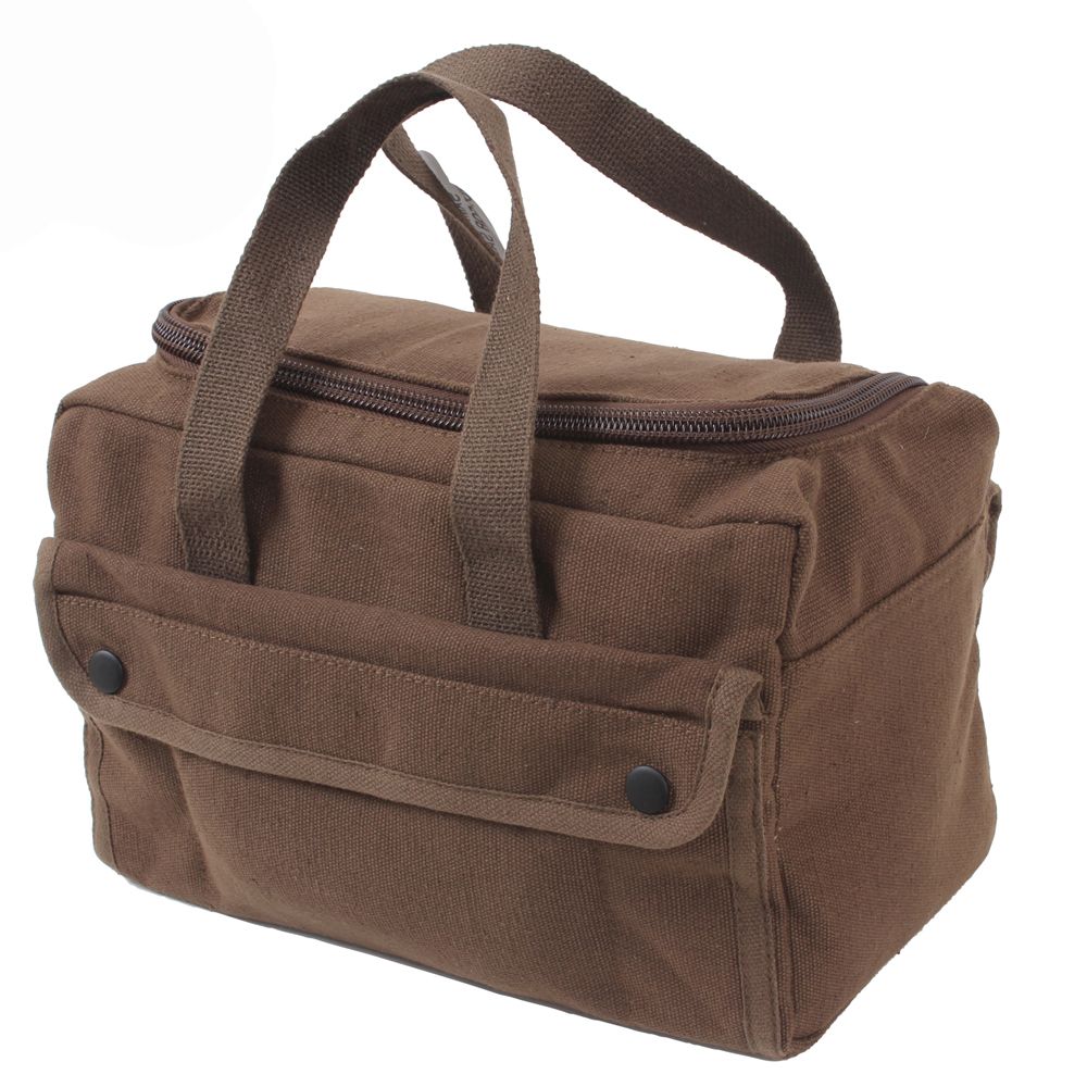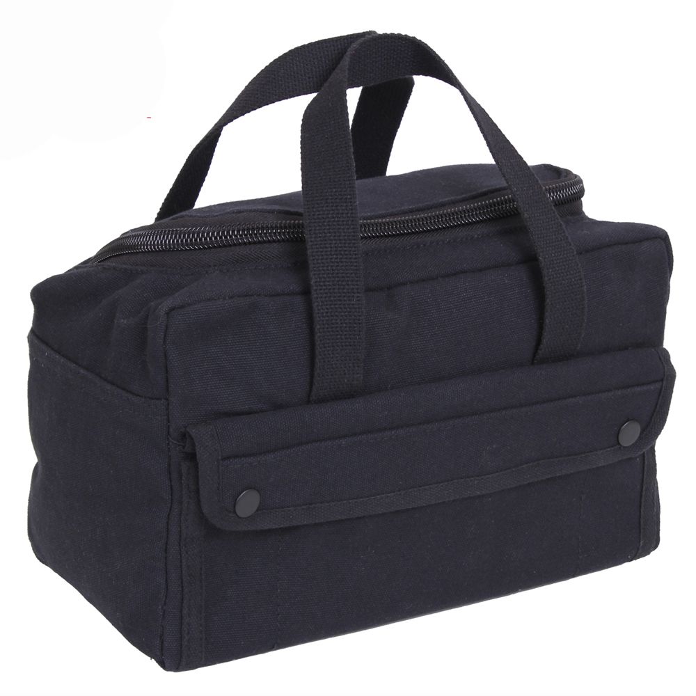 Mechanics Tool Bag Features A Heavyweight Cotton Canvas With A U-Shaped Zipper, Black Zipper Pull, Black Snaps.