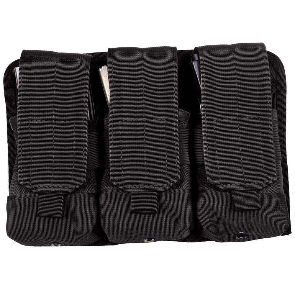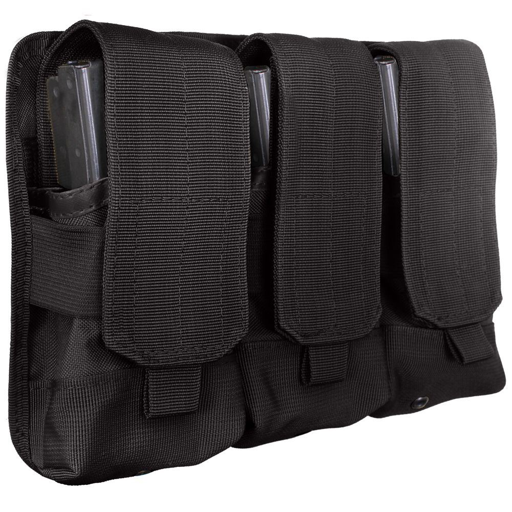 Universal Triple Mag Rifle Pouch can fit six M-16 or three AK-47 magazines, making this triple magazine pouch the optimal choice. The universal rifle mag pouch features six MOLLE straps on the back to attach to any of your MOLLE compatible gear. These MOLLE magazine pouches feature adjustable flaps with hook and loop closures to keep your ammunition secure. Each magazine pouch contains an elastic band and grommet hole at the bottom for drainage. Measuring 7 7/8” X 11 7/8”, the rifle magazine pouch is constructed of denier polyester for maximum durability.